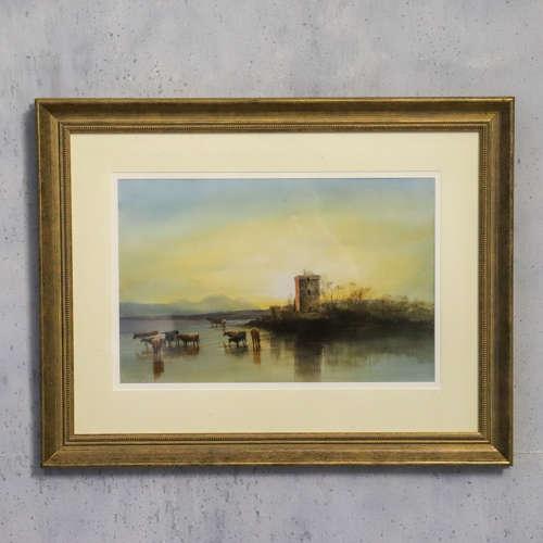 Watercolour of Cattle in Water Meadow by Andrew Nichols RHA 1804-1886