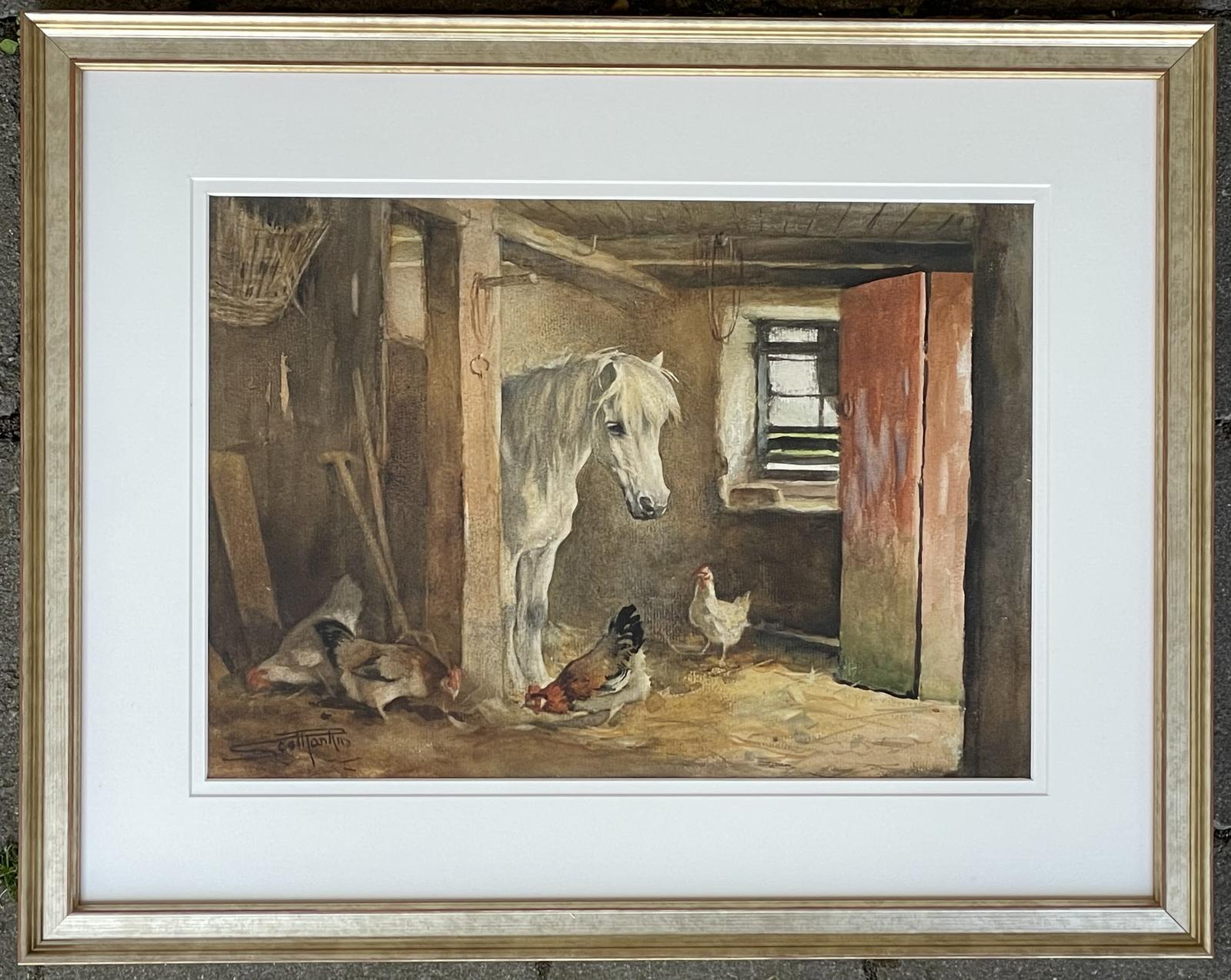 Watercolour of Farm Stable Scene By Andrew Scott Rankin