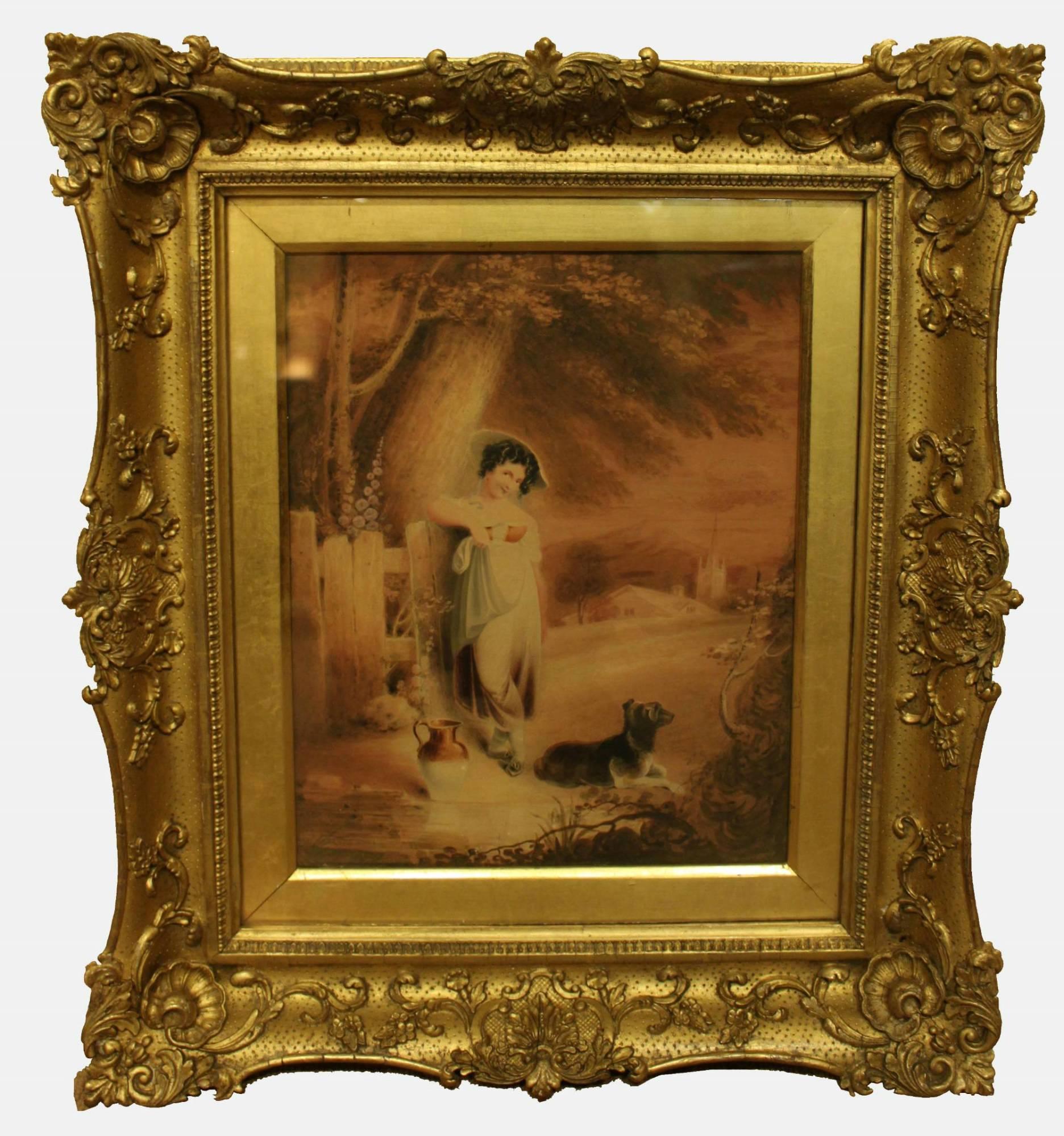Watercolour of Girl and Boy in Landscape 1822