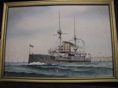 Watercolour of HMS BULWARK by Rhys Jenkins 1910