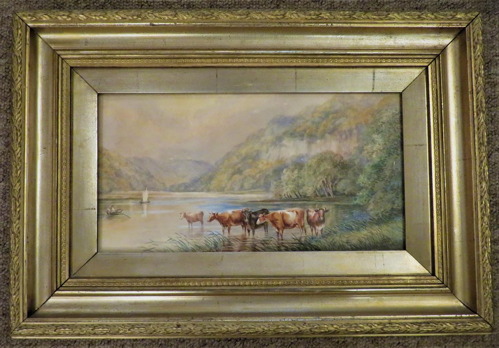 Watercolour on Card - Cattle on the Edge of a Lake c.1880