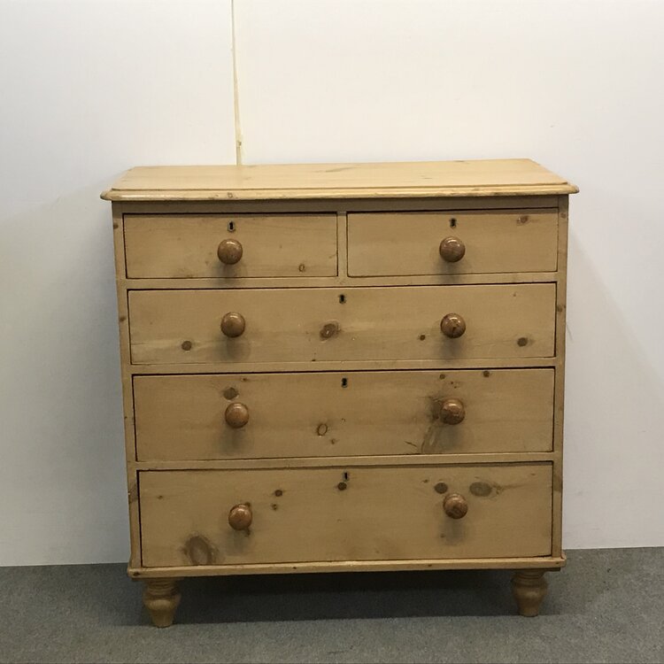 Waxed Victorian English Pine Chest of Drawers (1 of 1)