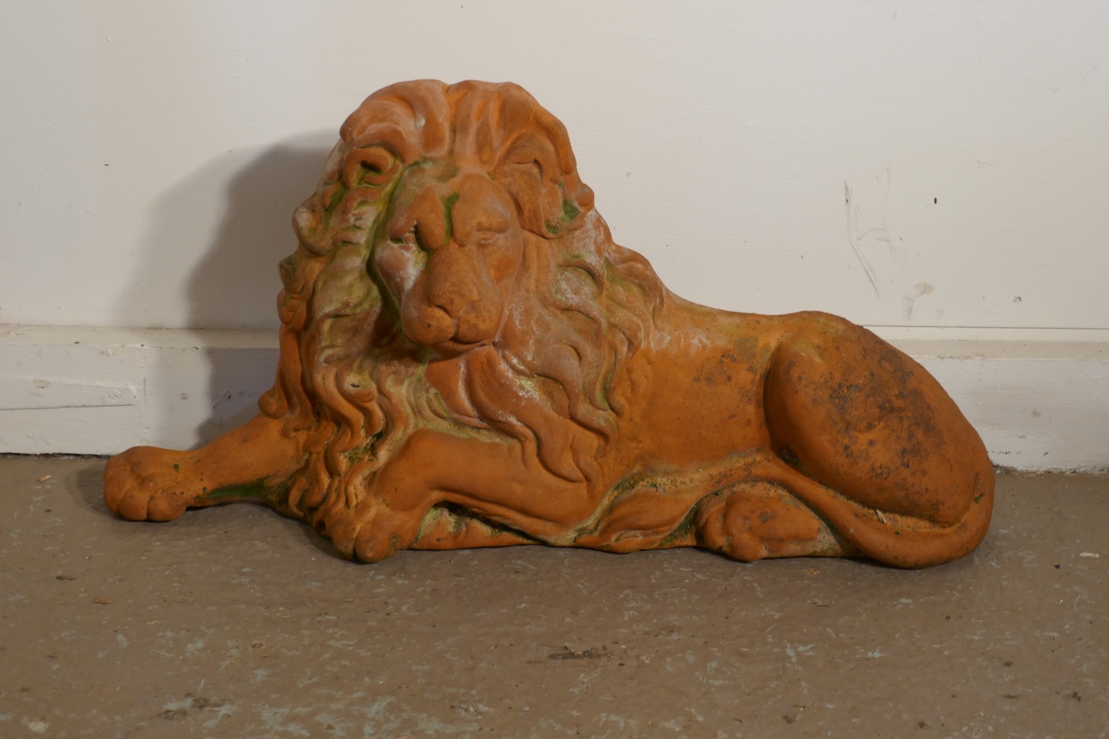 Weathered Flat Back Terracotta Lion Garden Ornament