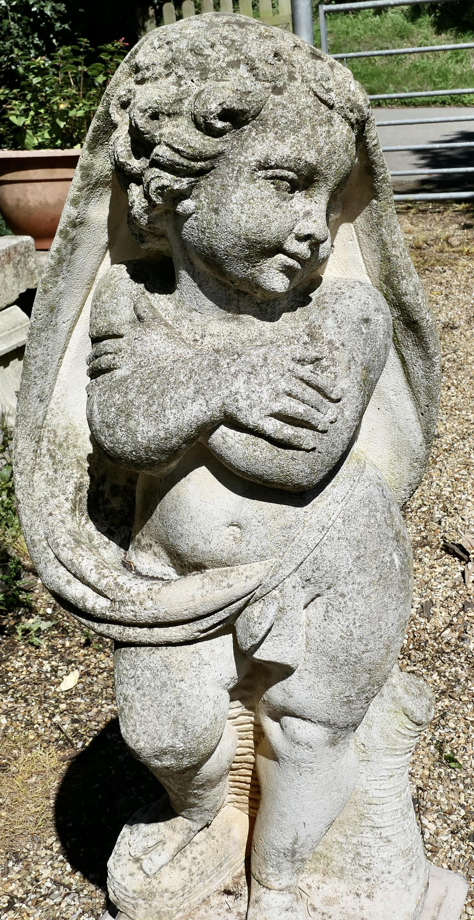 Weathered Statue of Cherub or Putti Set on a Plinth