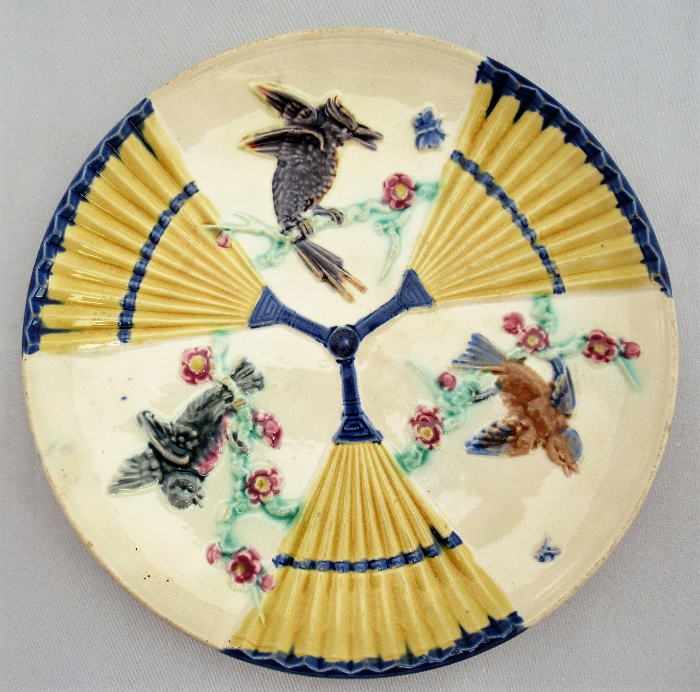 Wedgwood Aesthetic Period Majolica Plate with Fan & Bird Motifs