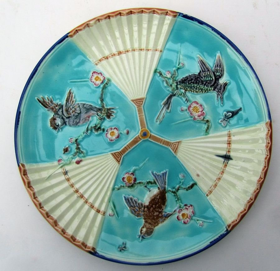 Wedgwood Aesthetic Period Majolica Plate with Fan & Bird Motifs