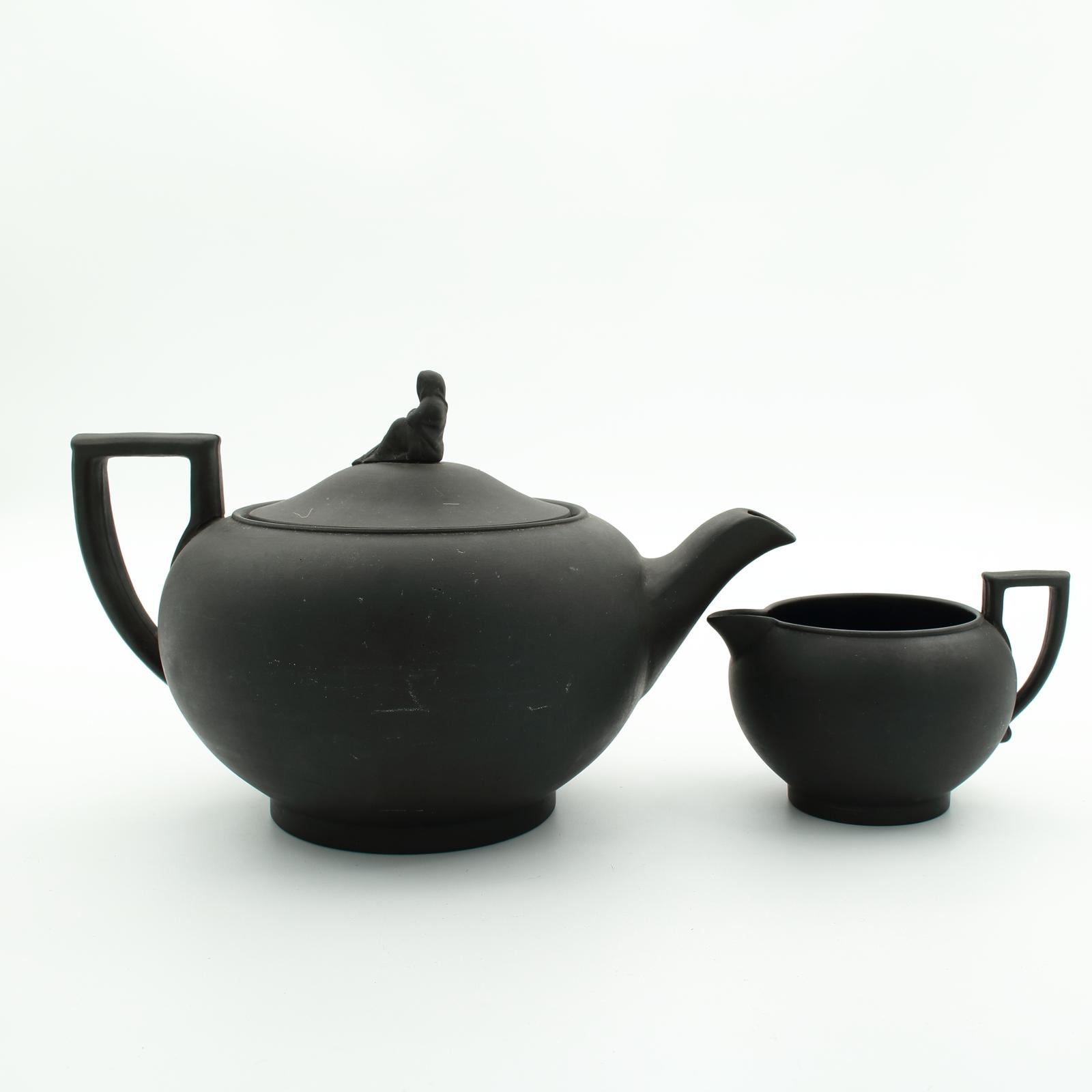 Wedgwood Black Basalt Teapot and Milk Jug