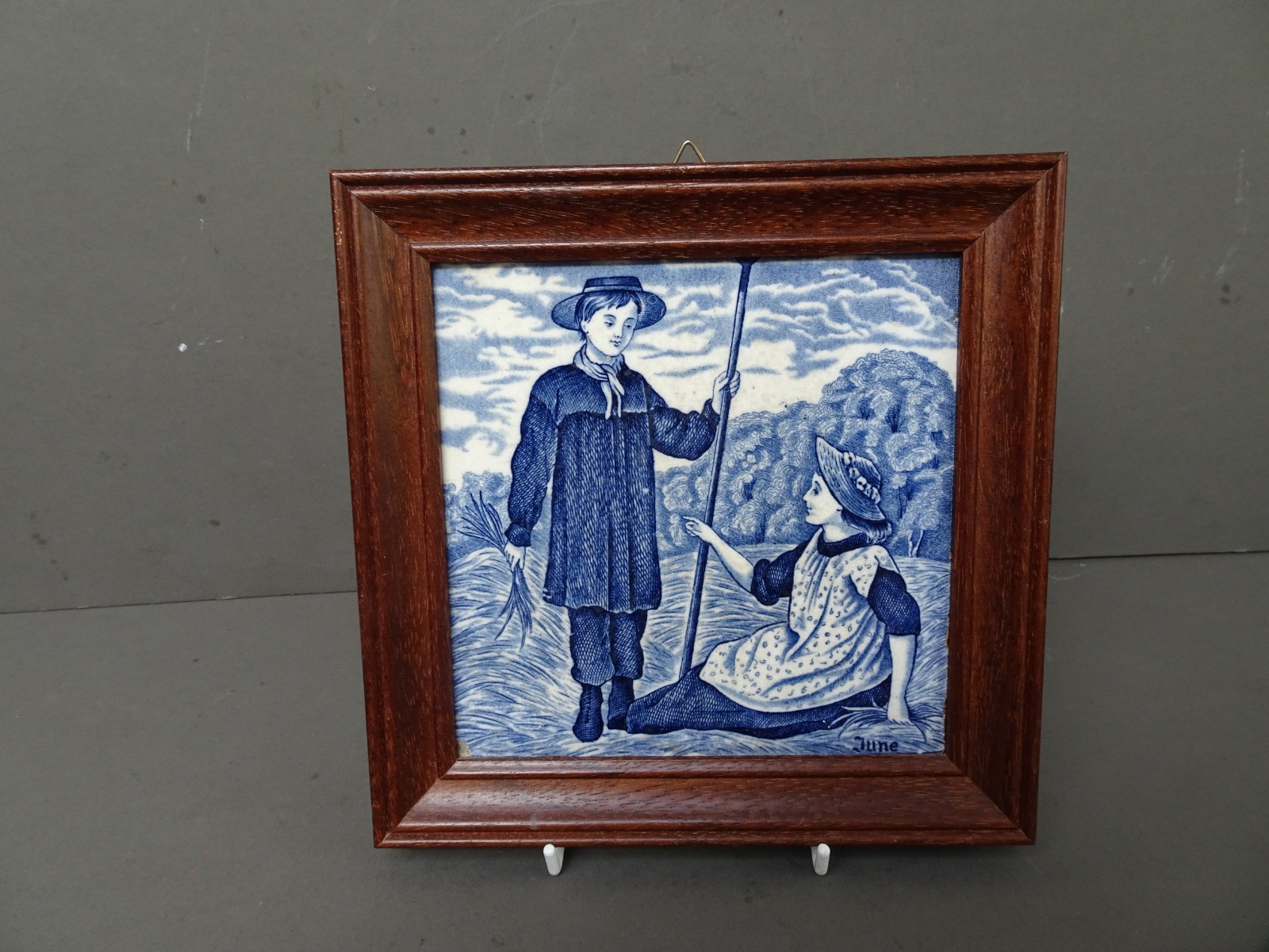 Wedgwood. Late 19th Century Framed Calendar Tile. Victorian. June