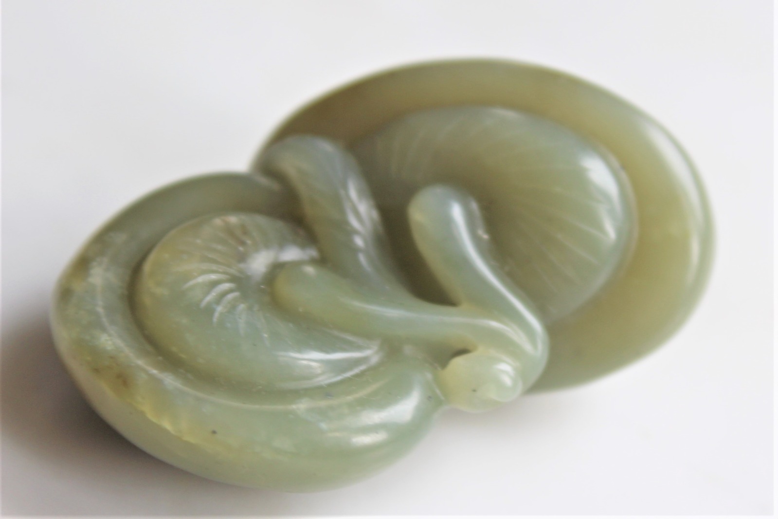 Well Carved Chinese Green Jade Lingzhi Fungus Pendant