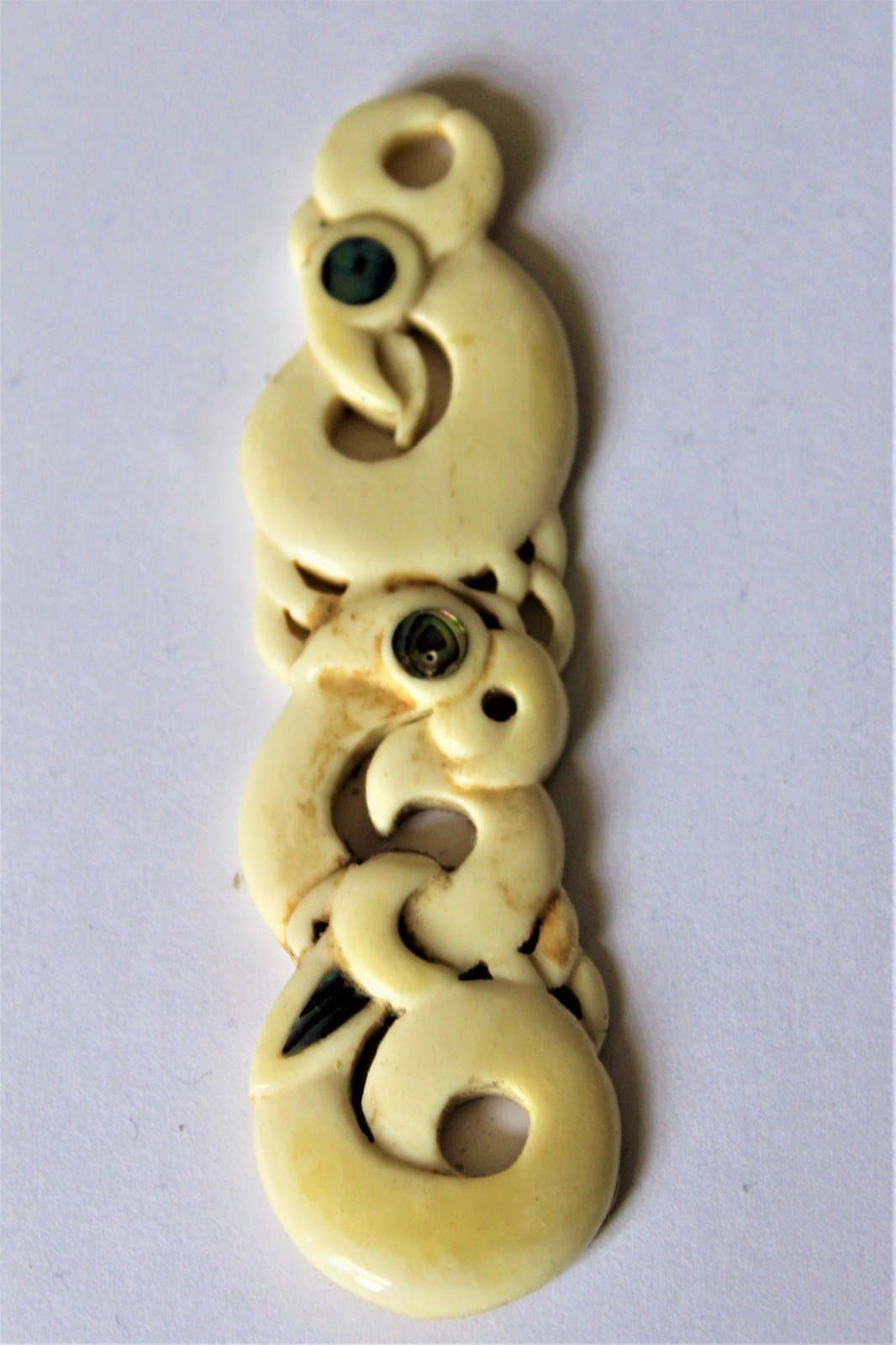 Well Carved Maori Marine Bone Pendant with Abalone Shell Inlay