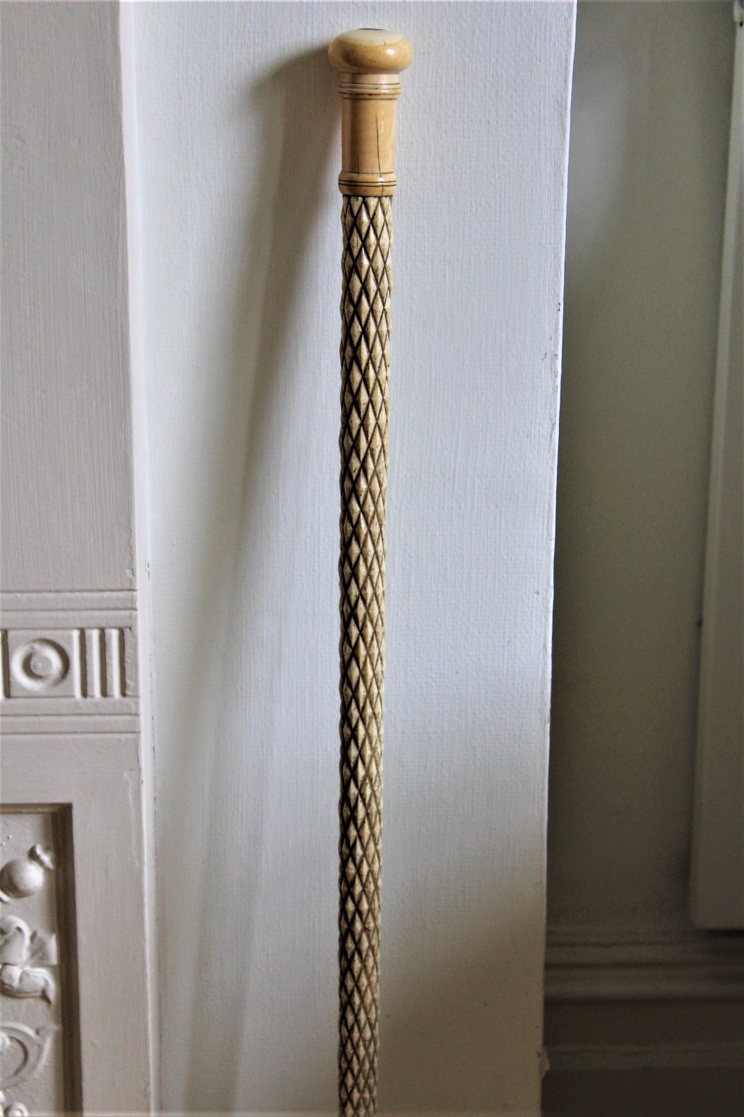 Well Carved Marine Bone Walking Stick of Stout Dimensions English C.1800