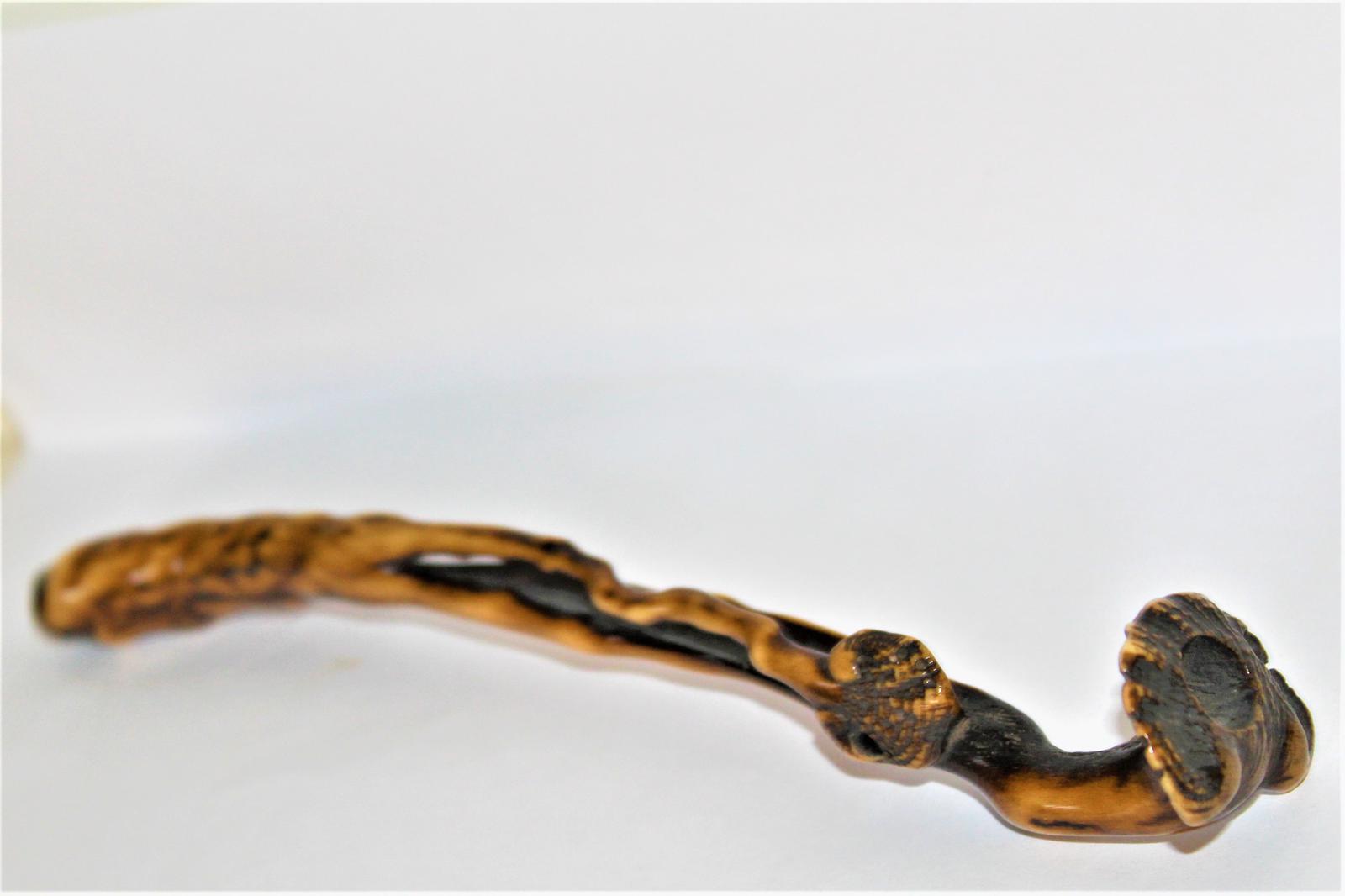 Well Carved Sashi Netsuke Pipe Case Holder in the Form of a Ruyi