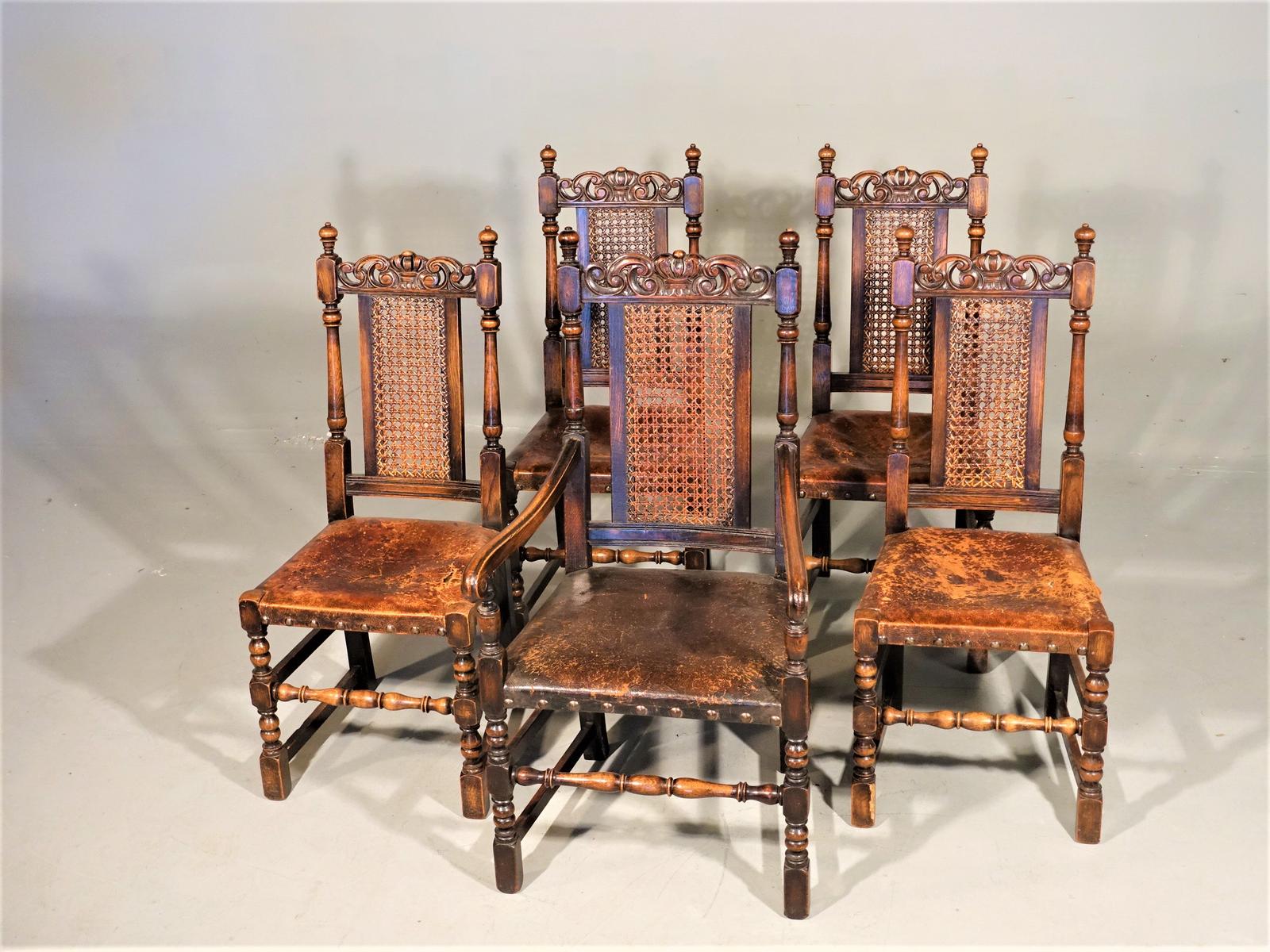 Well Carved Set of 4+1 Carolean Style Oak Chairs