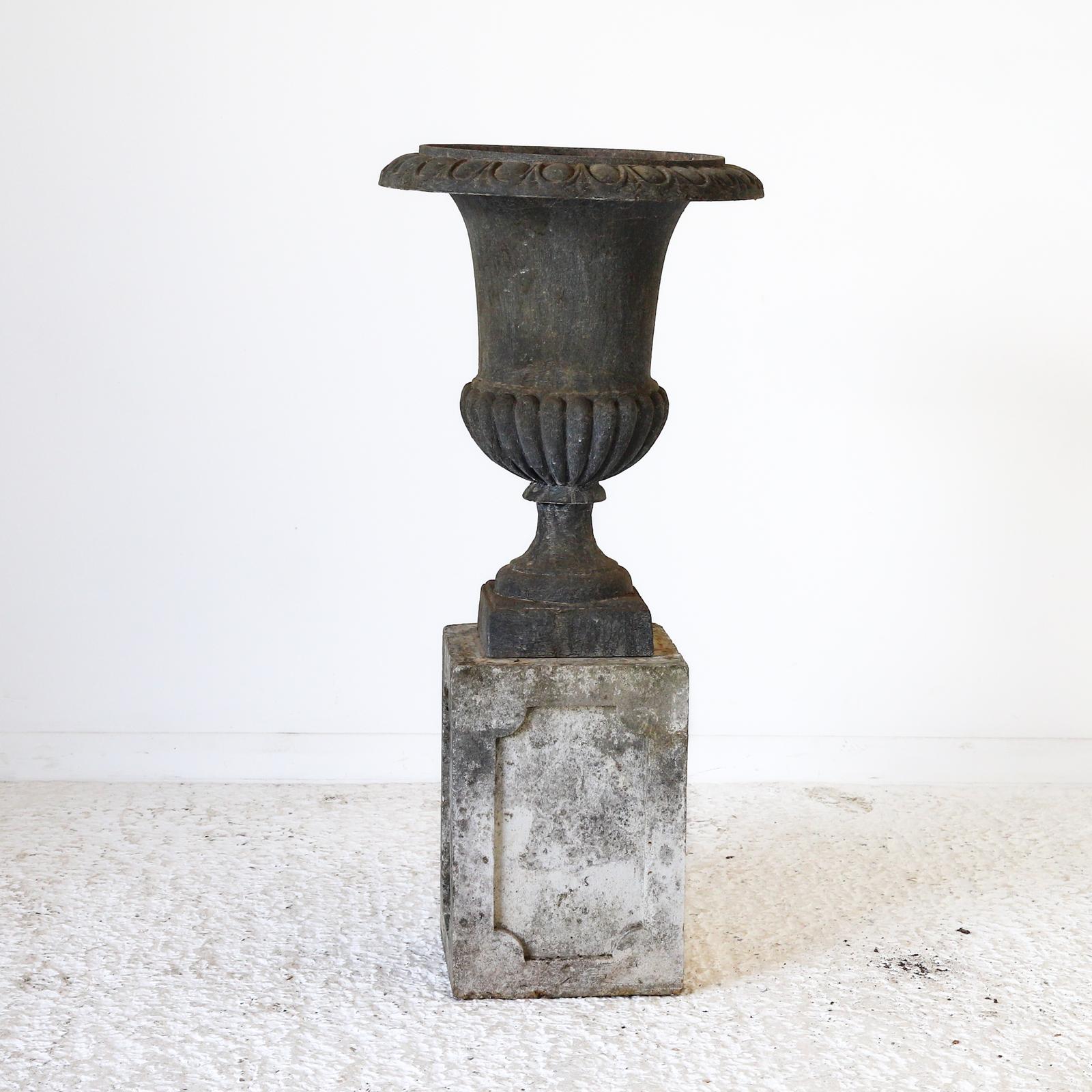 Well Weathered 19th Century Cast Iron Urn on Stand