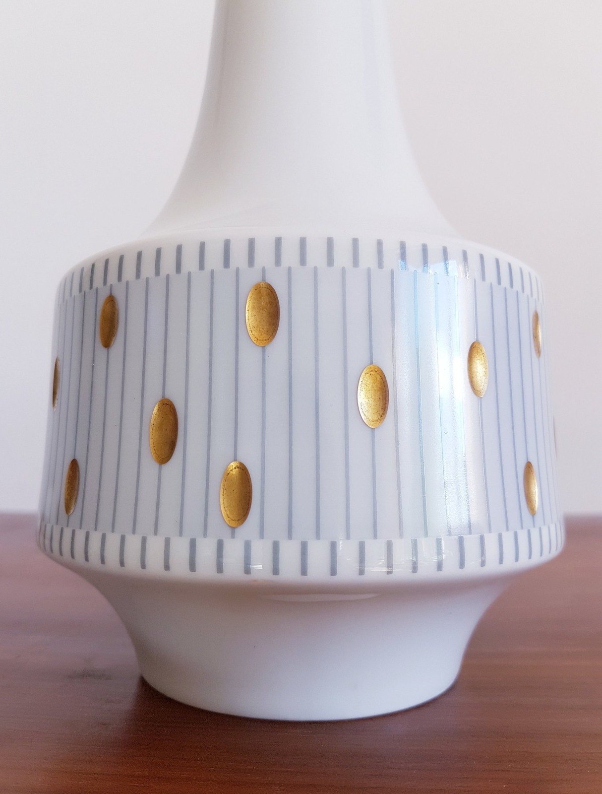 West German Heinrich Selb Modernist White, Grey & Gold, Gemmo Series Porcelain Bottle Vase