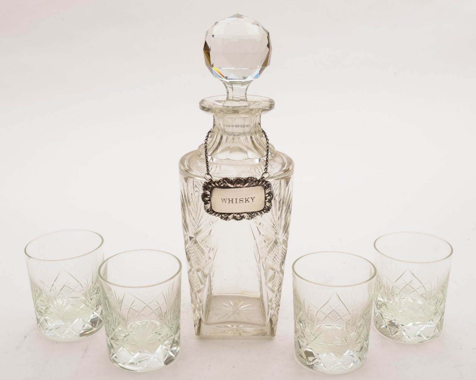 Whiskey Decanter with 4 Whiskey Tumblers c.1920