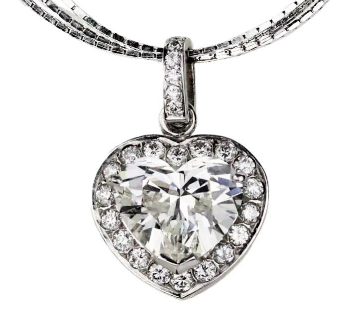 White Gold 18K Pendant Heart with Superb Central Diamond of 3.02 Carats - Vicenza, Italy