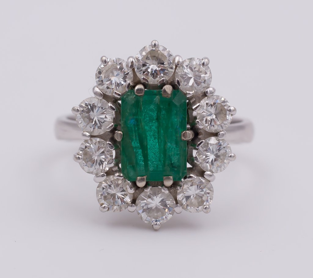 White Gold, Brilliant Cut Diamond & Emerald Ring, 1950s