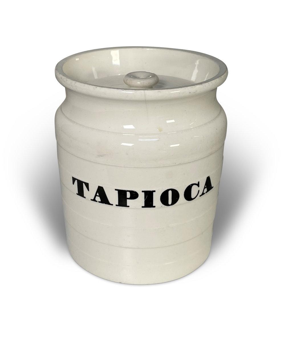 White Ironstone Lidded Tapioca Banded Storage Jar
