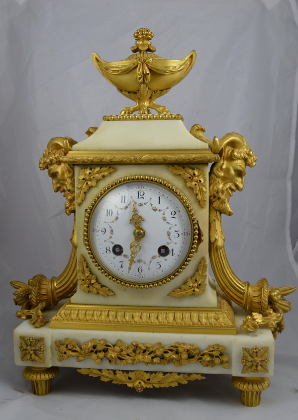 White Marble & Ormolu Mounted Mantel Clock c.1890
