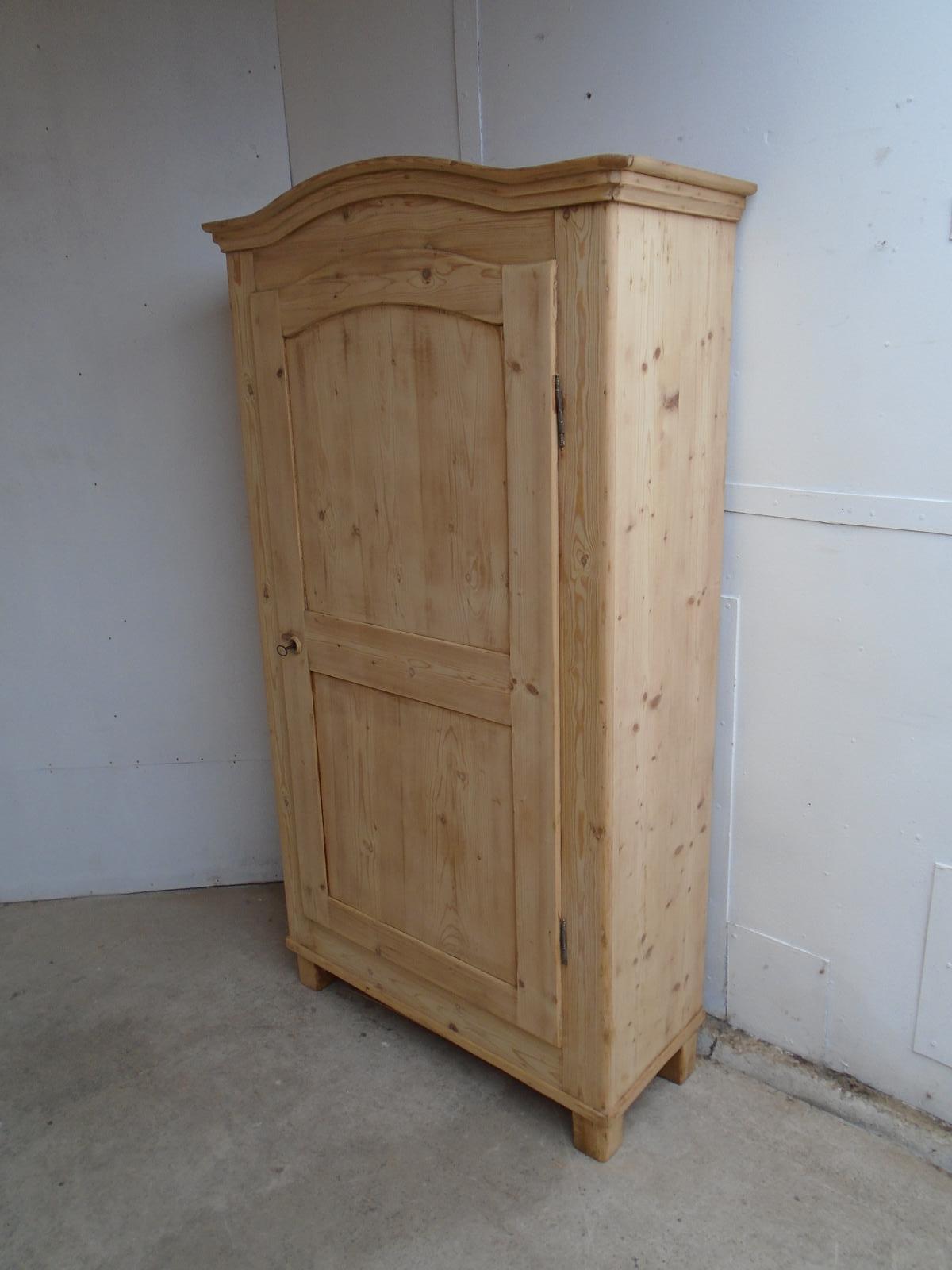 Wide Arched Victorian 1 Door Antique Pine Hall Wardrobe to wax / paint