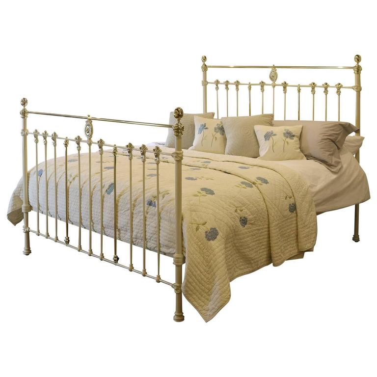 Wide Cream Bed with Brass Rosette Decoration