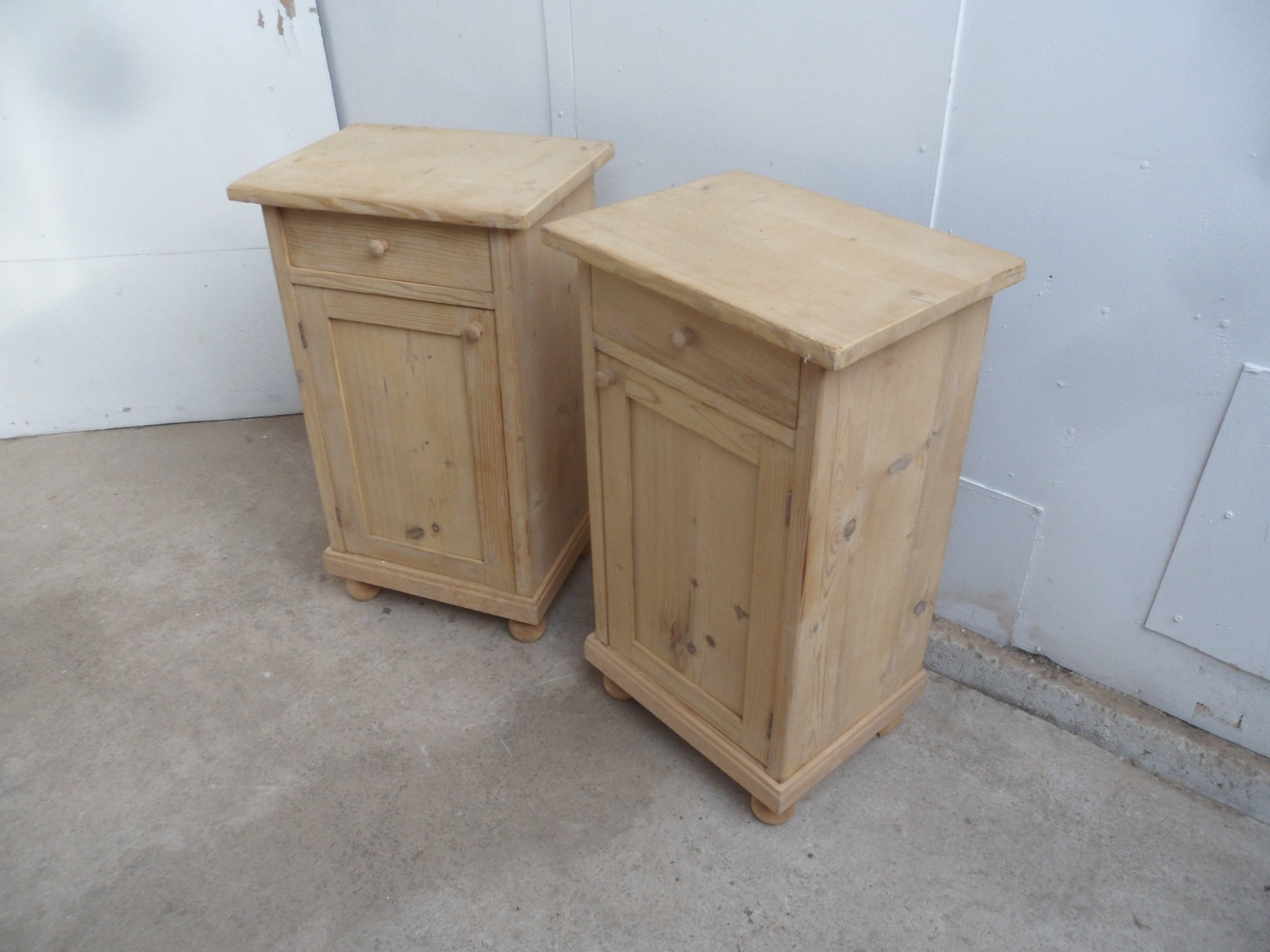 Wide Mint Clean Pair of Old Pine Bedside Cabinets to wax / paint