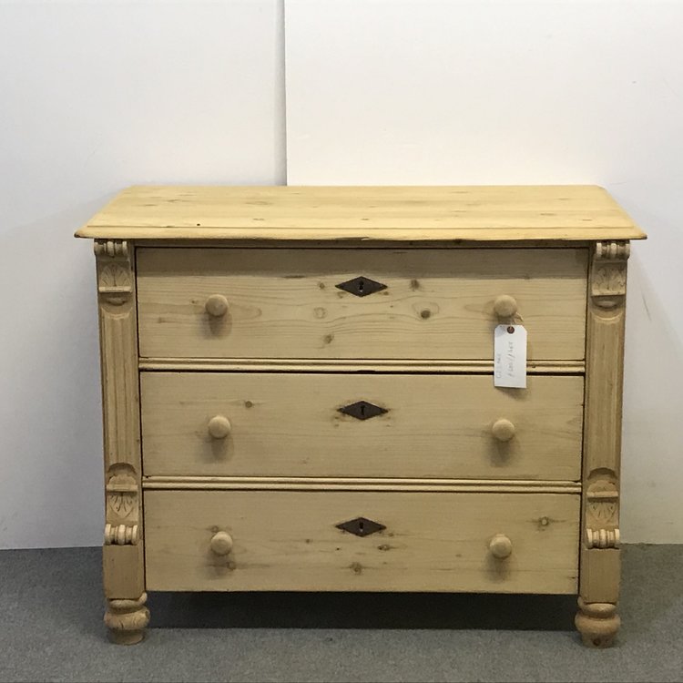 Wide Pine Chest of Three Drawers c.1920 (1 of 1)