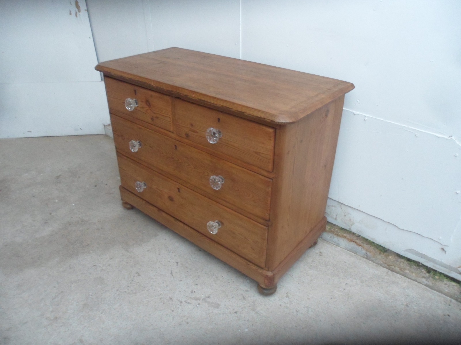 Wide Quality Waxed Victorian Antique Pine 4 Drawer Chest of Drawers