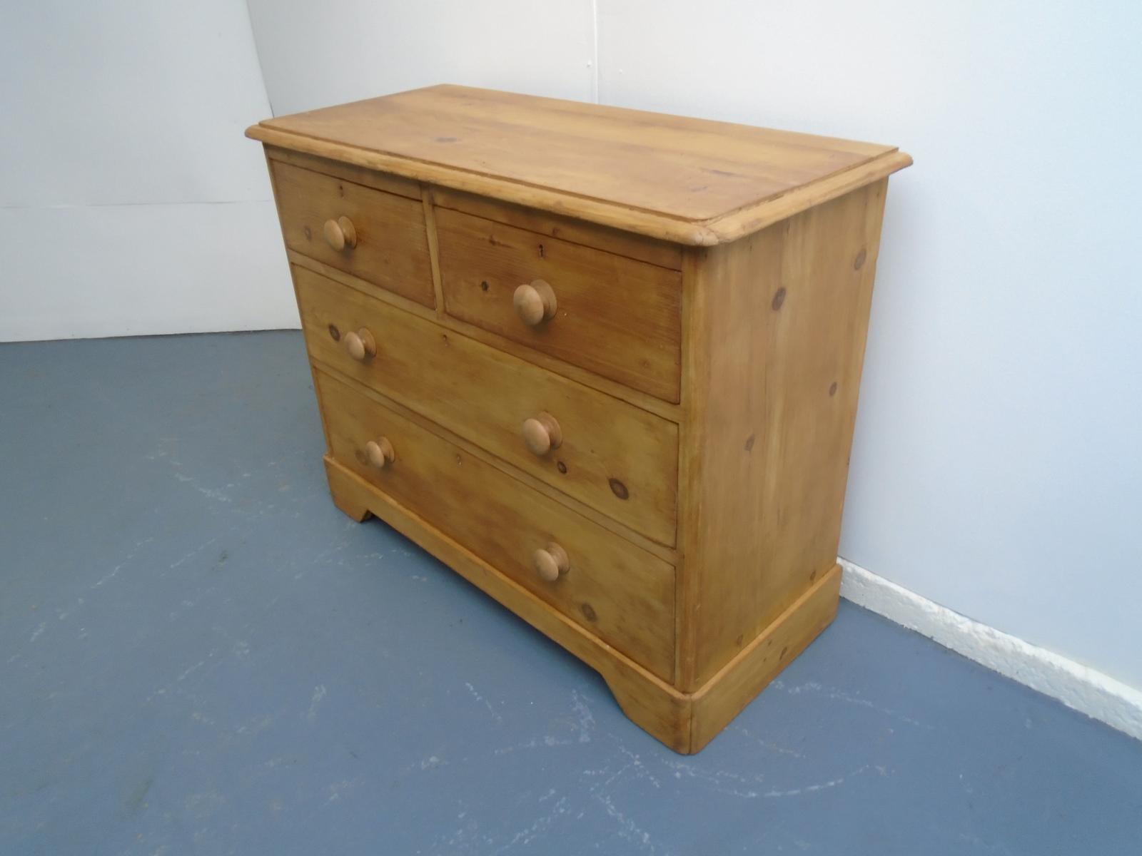 Wide Victorian Antique Pine Waxed 4 Drawer Chest of Drawers
