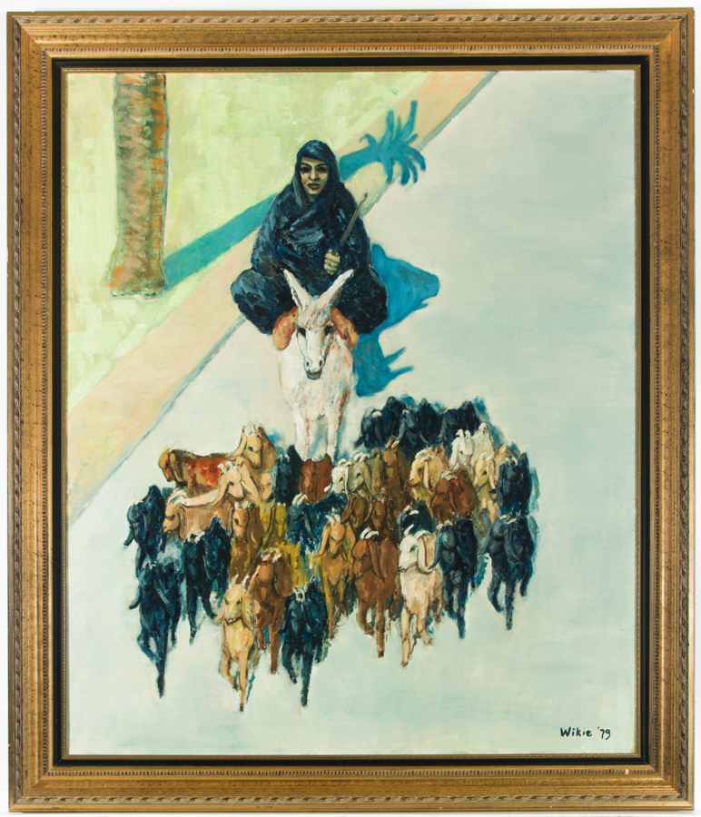 Wikie - Signed and Framed 1979 Oil, Goatherd with Flock