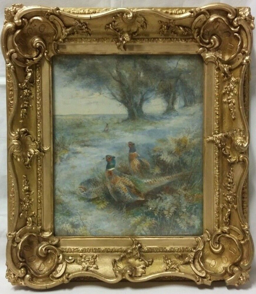 'Wild Pheasants' a Watercolour Painting Signed Jas Stinton