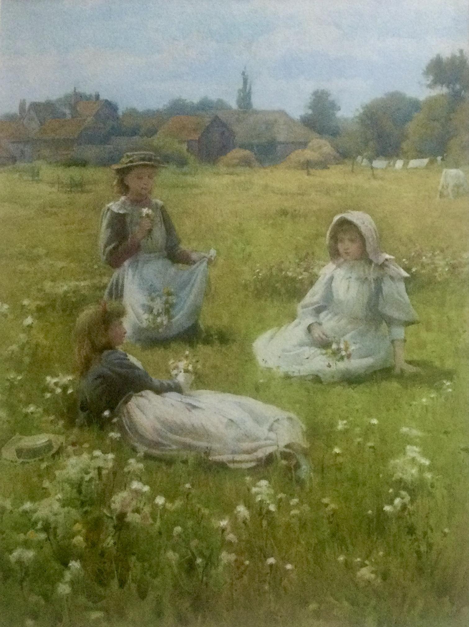 William Affleck Watercolour - Children Picking Flowers (1 of 2)
