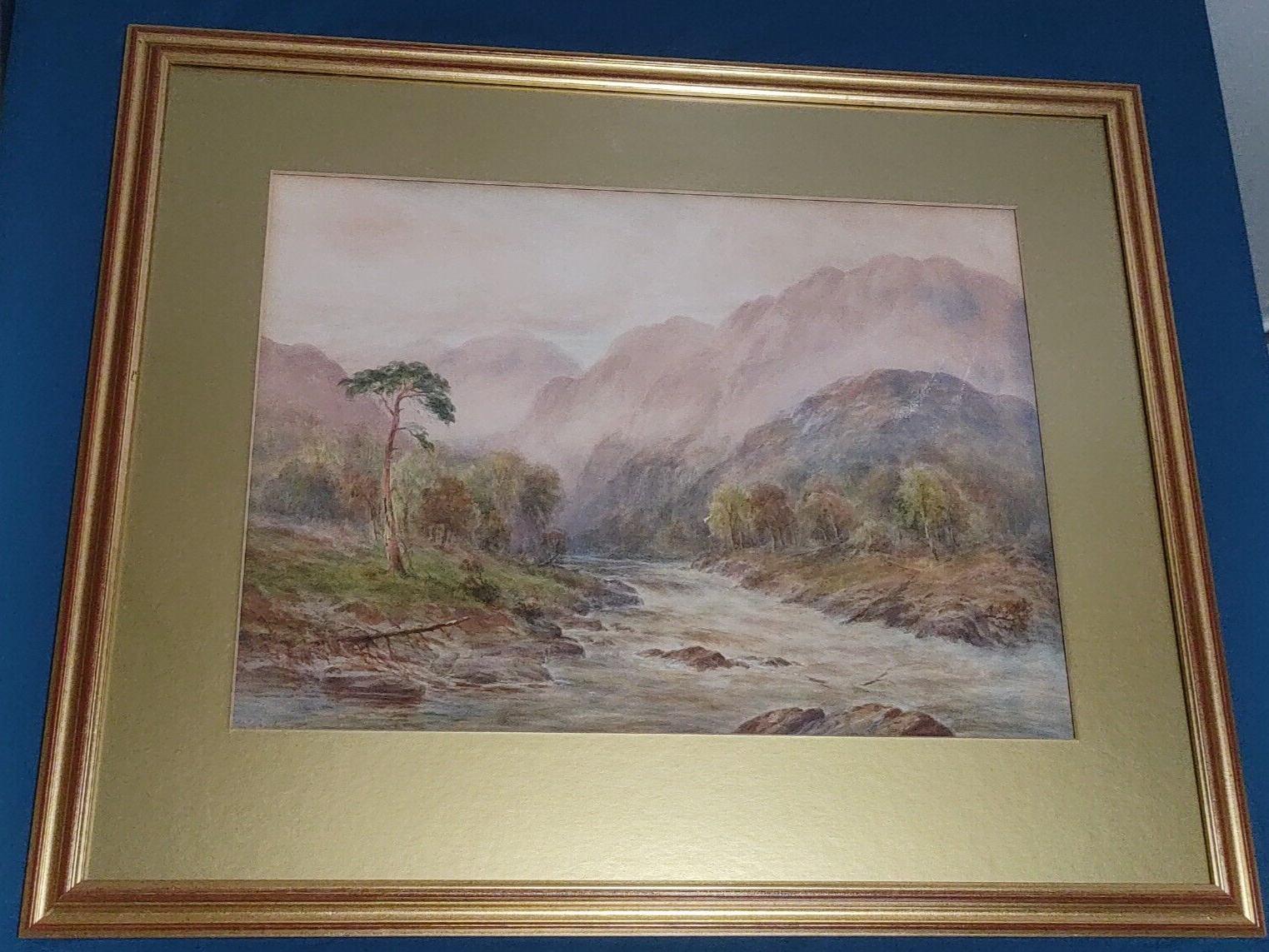 William Baker (1863-1937) Antique British Watercolour Art Painting Landscape Nature River