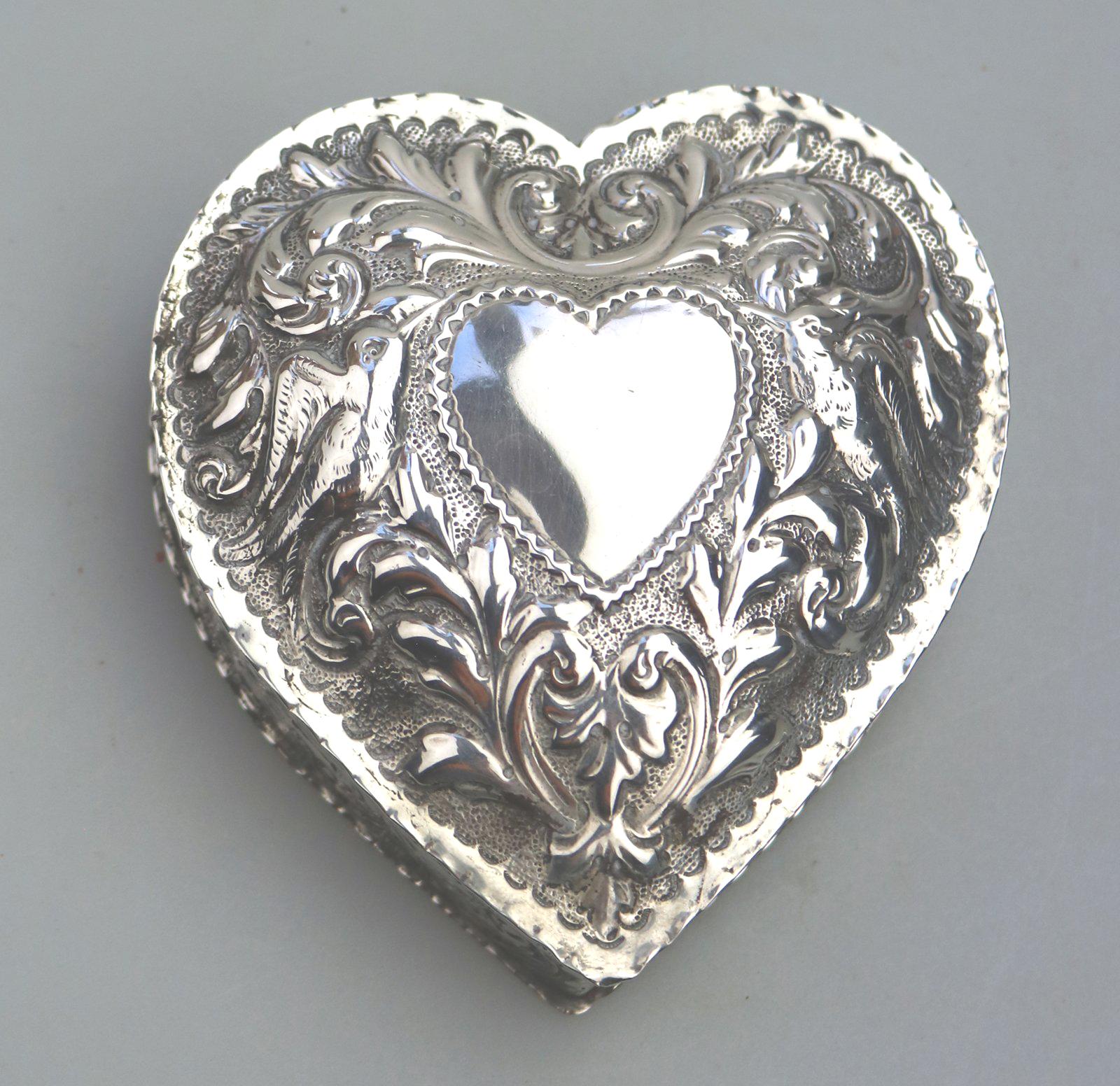William Comyns - Good Solid Silver Novelty Heart Box c.1895