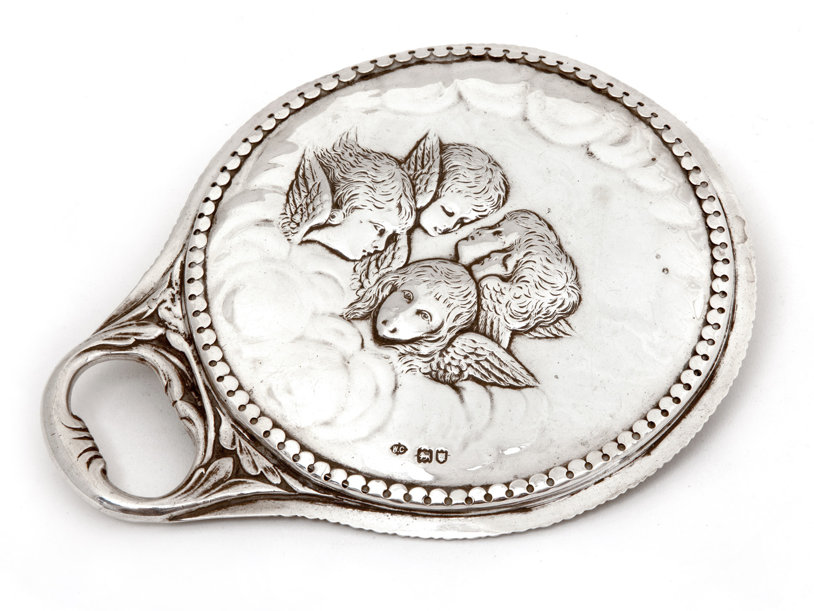William Comyns Silver Hand Mirror Decorated with Reynolds Angels
