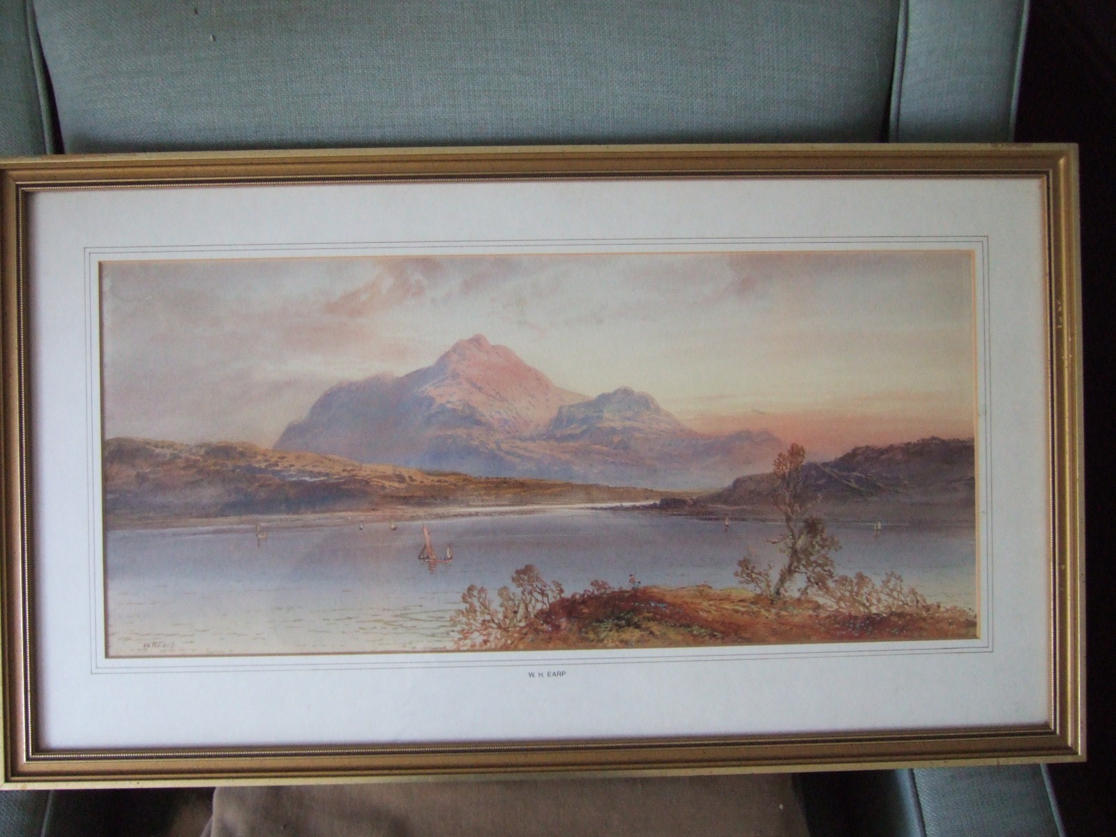 William Henry Earp (1831-1914):  Watercolour of  a Mountainous Landscape with Lake/Loch (1 of 4)