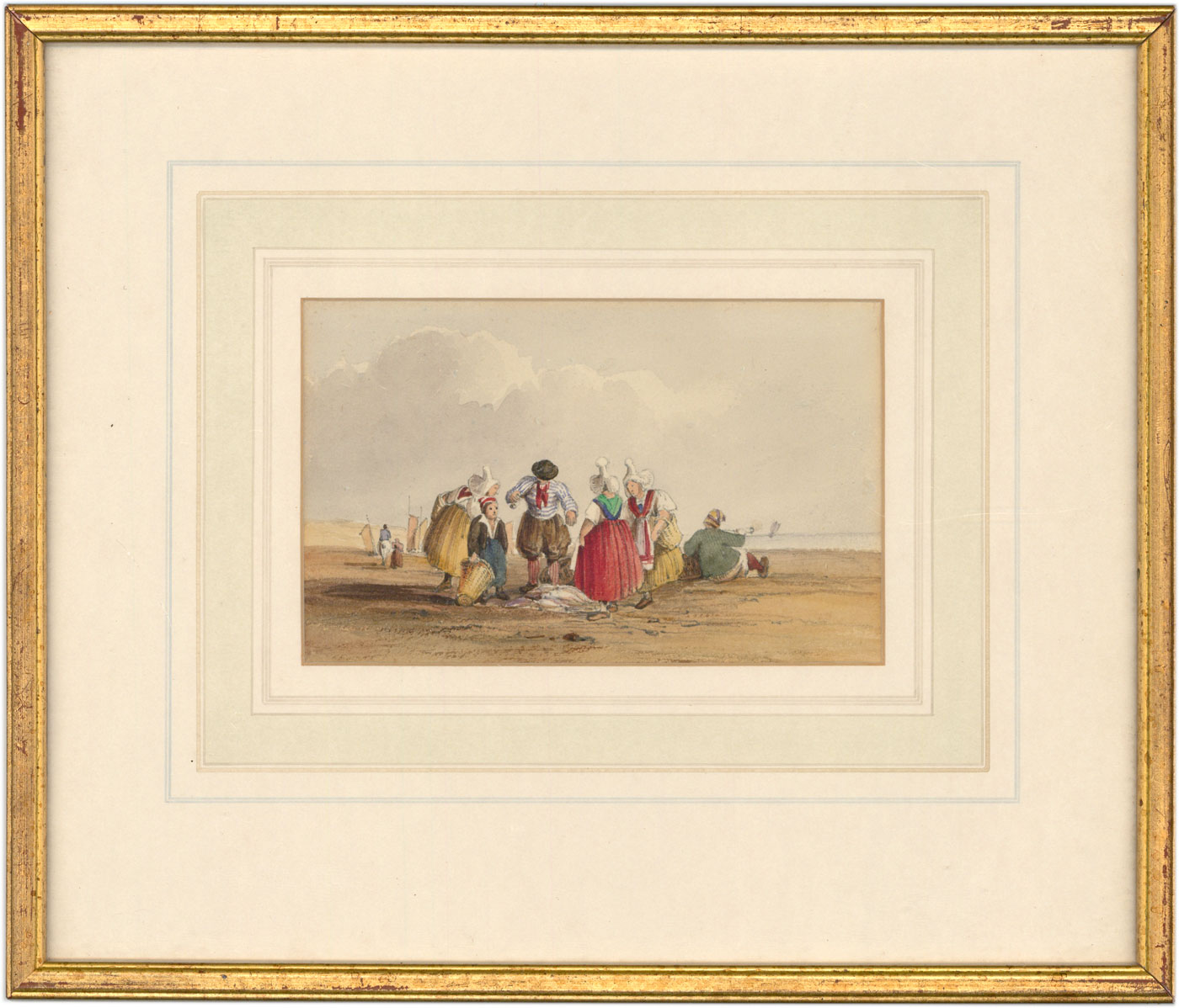 William Henry Harriott - Framed Watercolour, Fisherfolk On Beach