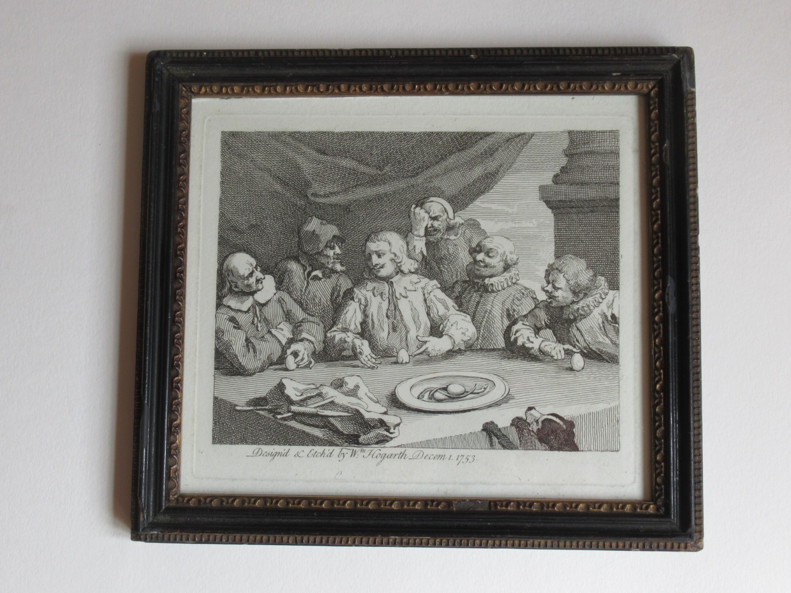 William Hogarth, Columbus Breaking the Egg 1753 Original Print From 1837 Edition, Period Frame