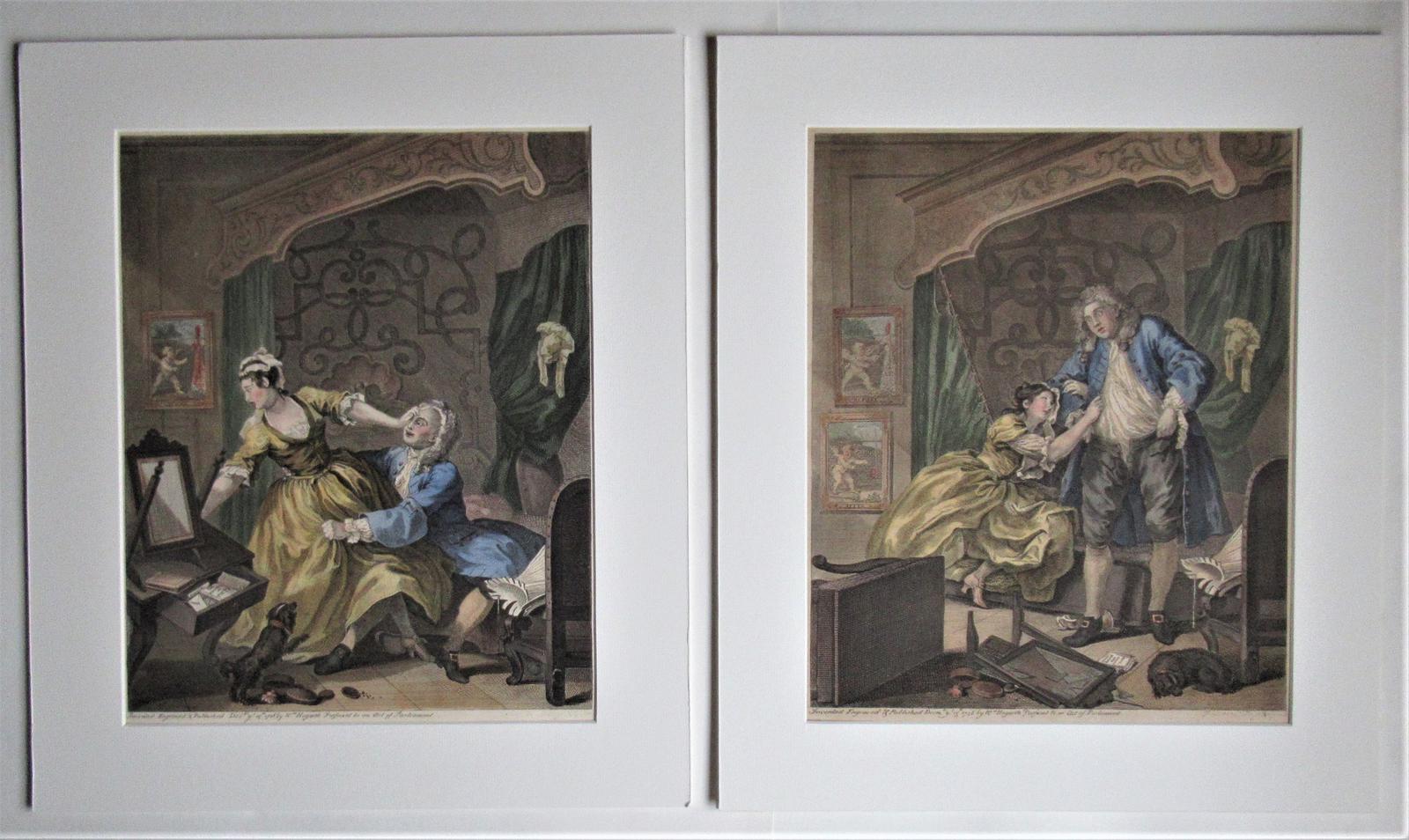 William Hogarth, Pair of Original Prints, Later Hand Colour, Before and After Engraved 1736
