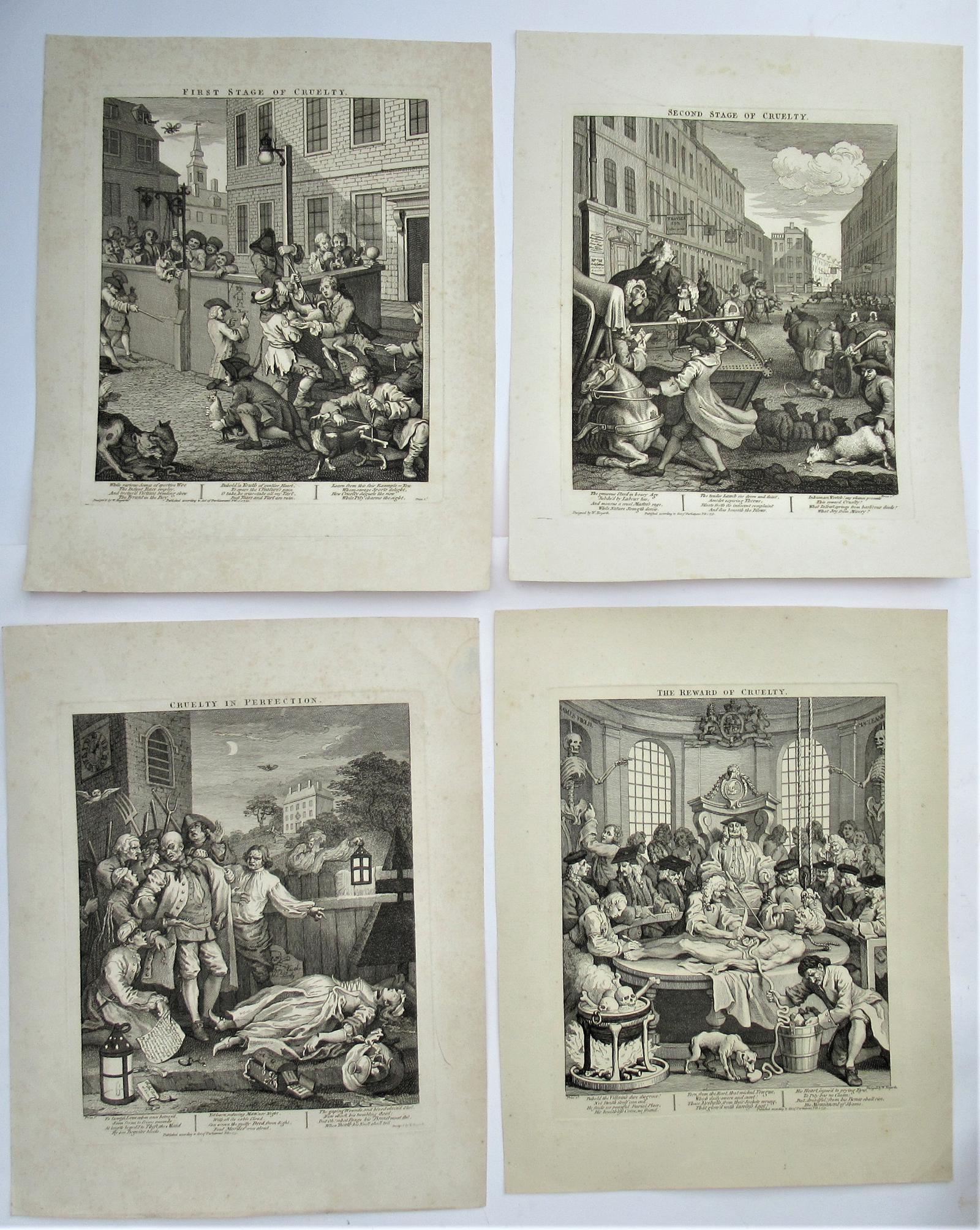 William Hogarth, The Four Stages of Cruelty, original 18th century prints, engraved 1751