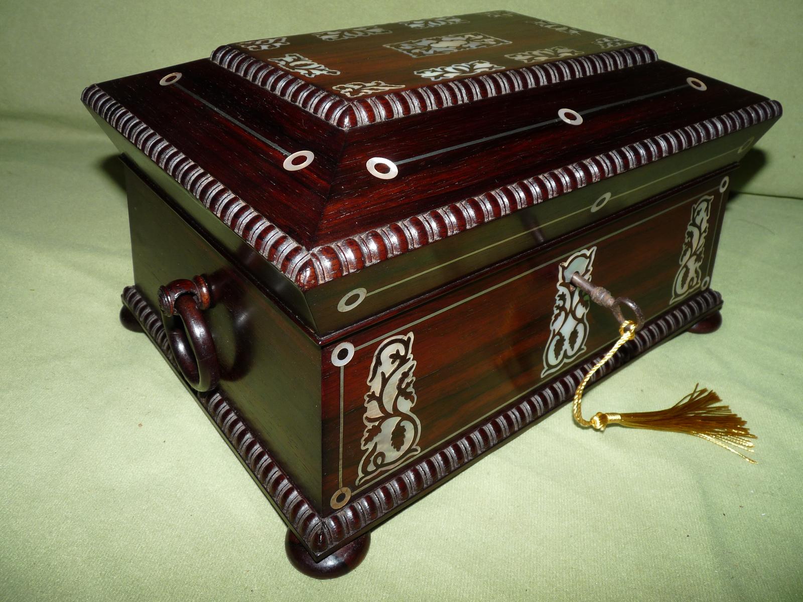 William IV Inlaid Rosewood Jewellery Box + Tray c.1835