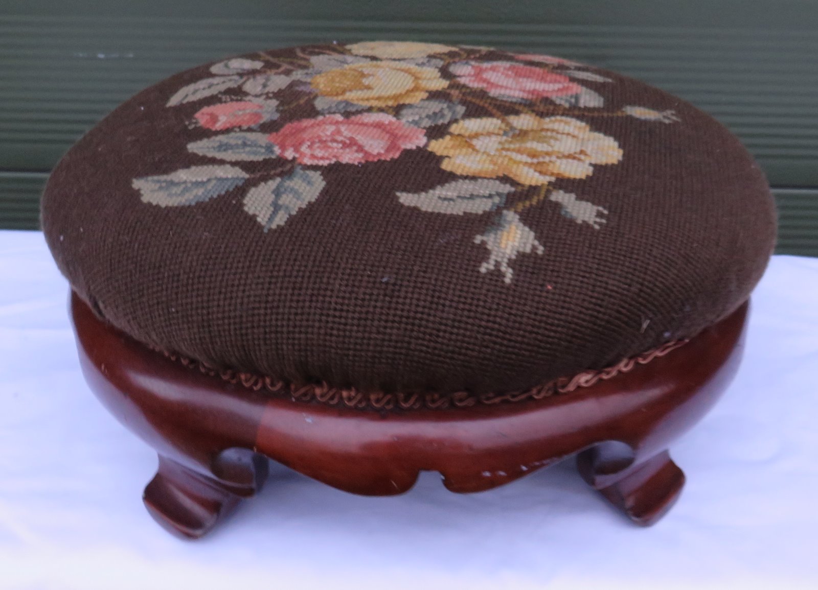 William IV J. Kendall & Co Round Walnut Upholstered Stool