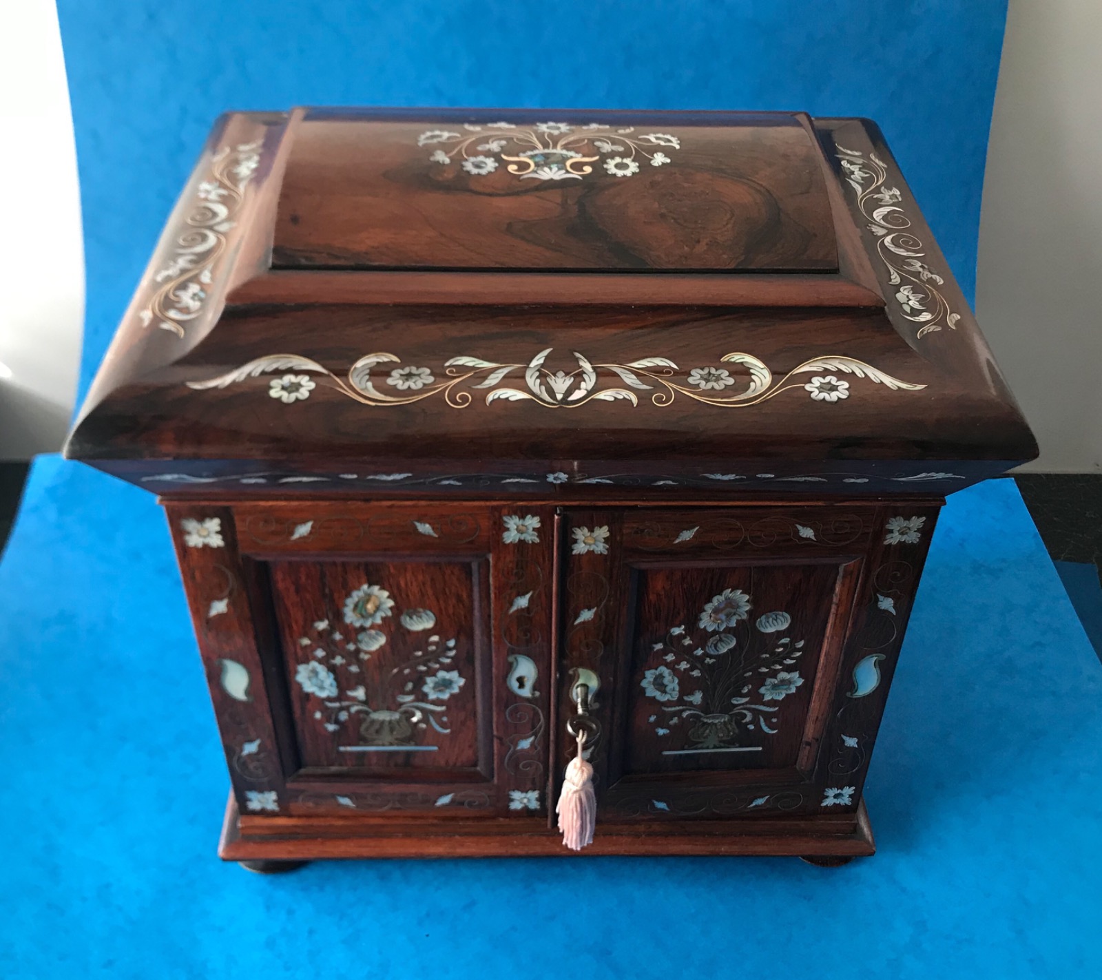 William IV Ladies Mother of Pearl & Abalone Inlaid Rosewood Table Cabinet