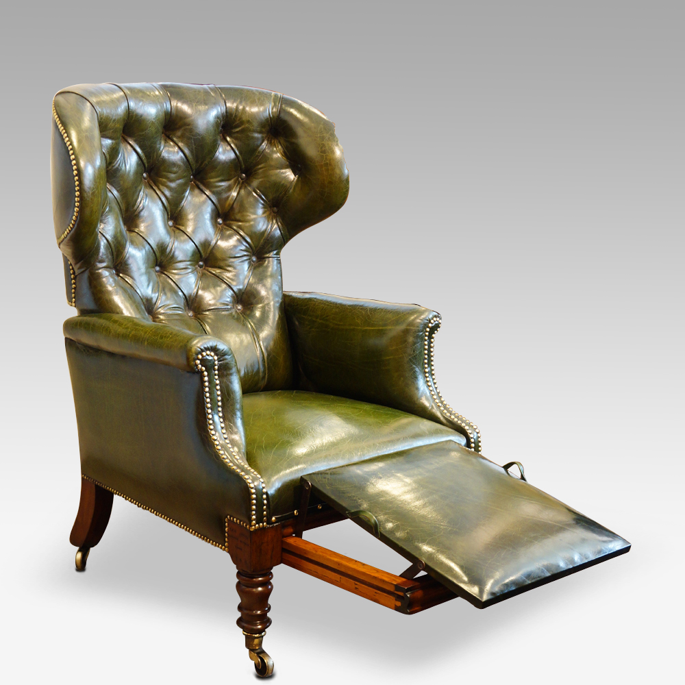 William IV Leather Button Back Reclining Patent Library Chair (1 of 1)