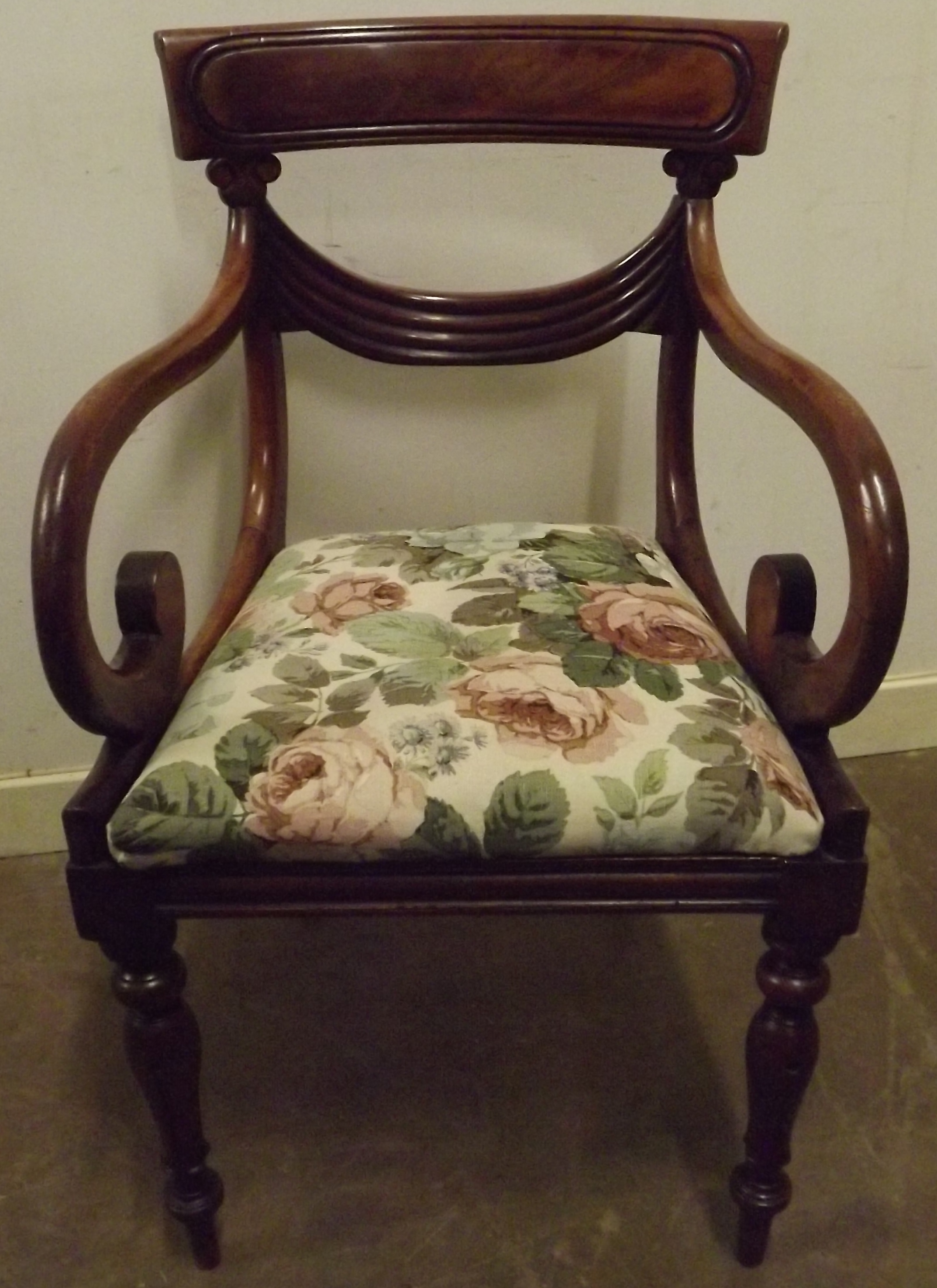 William IV Mahogany Framed Scroll Armchair c.1835