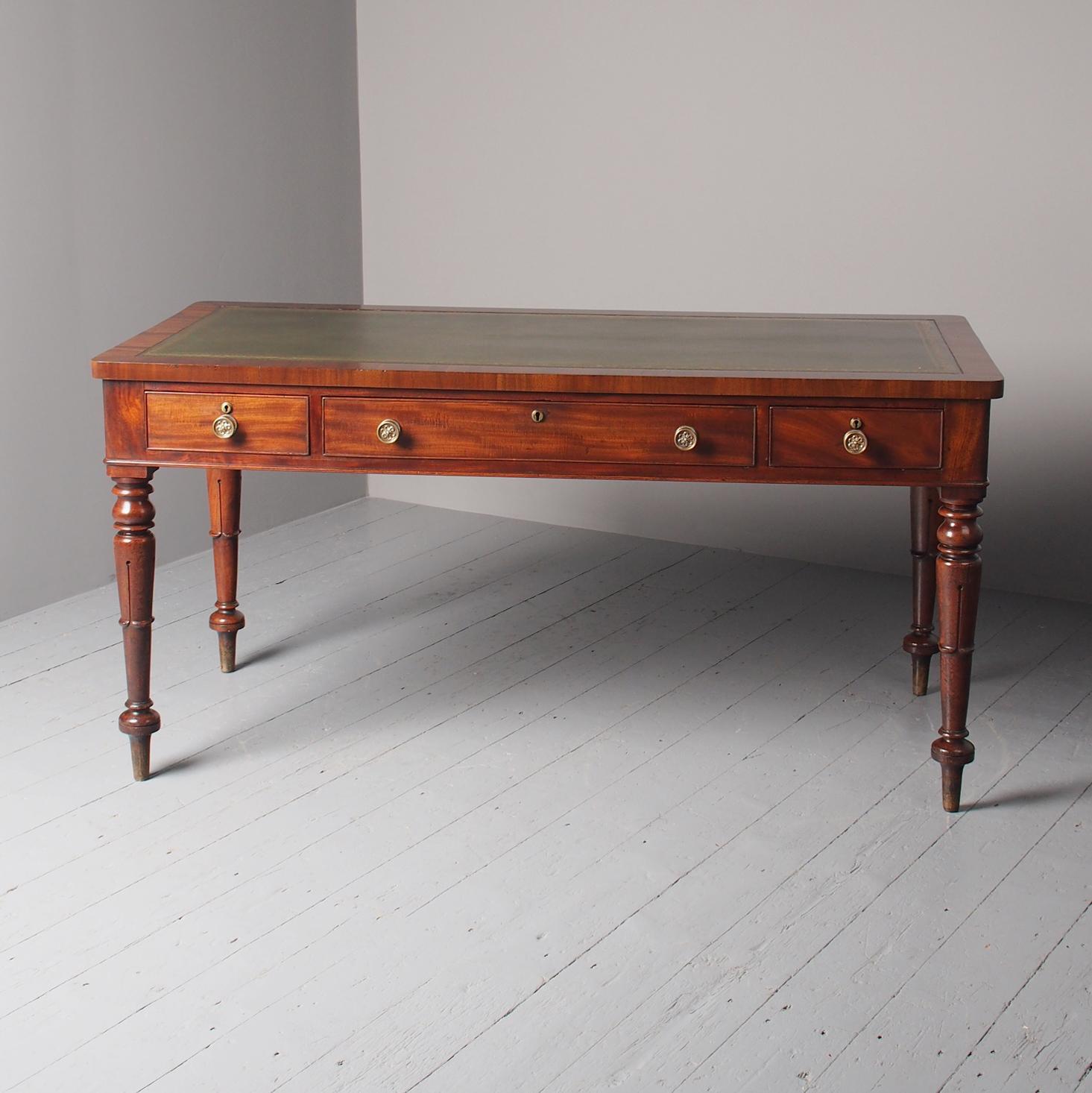 William IV Mahogany Partners Writing Table with Green Leather Top