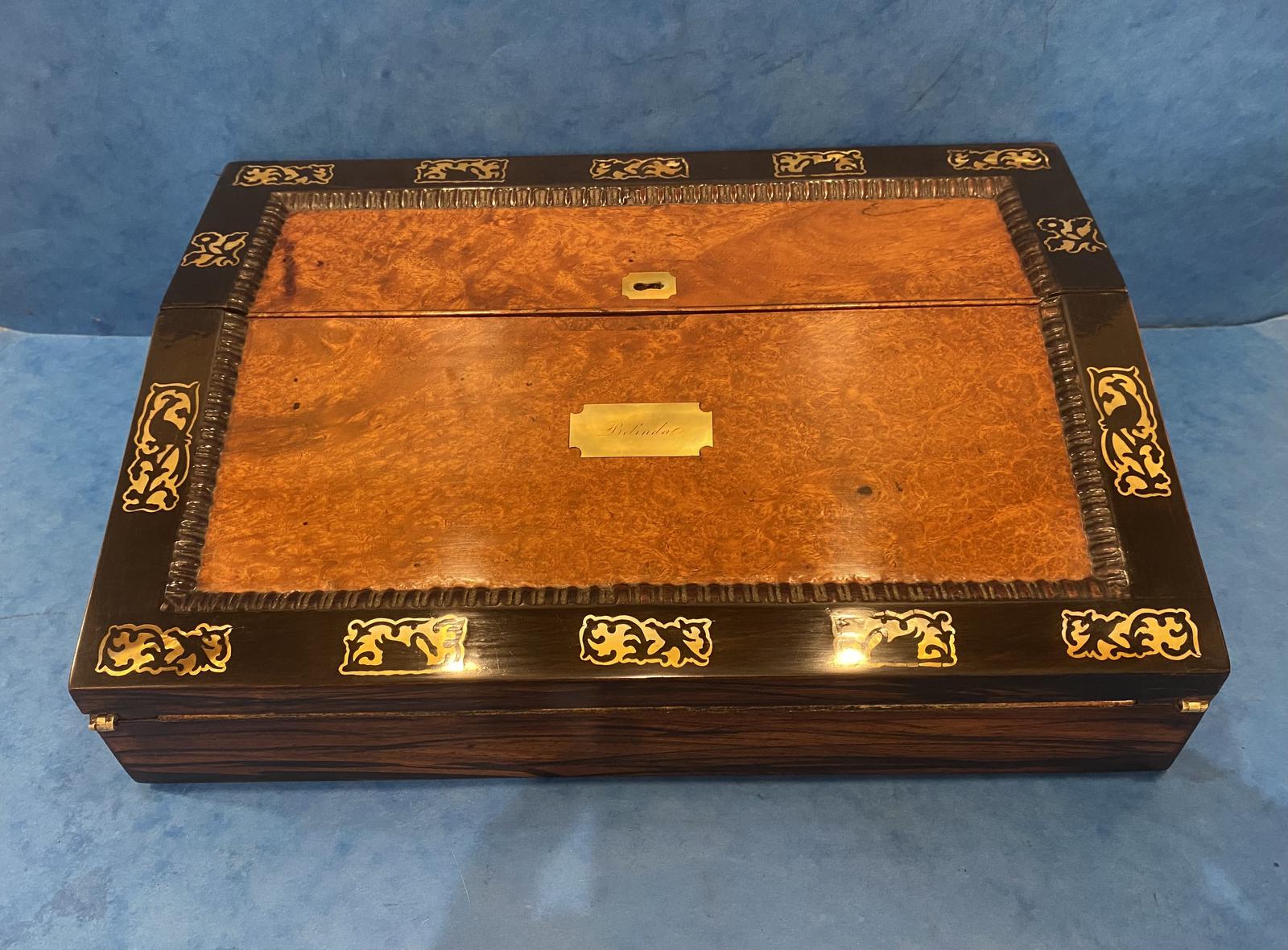 William IV Rosewood & Amboyna Lap Desk Featuring Mother of Pearl Inlay