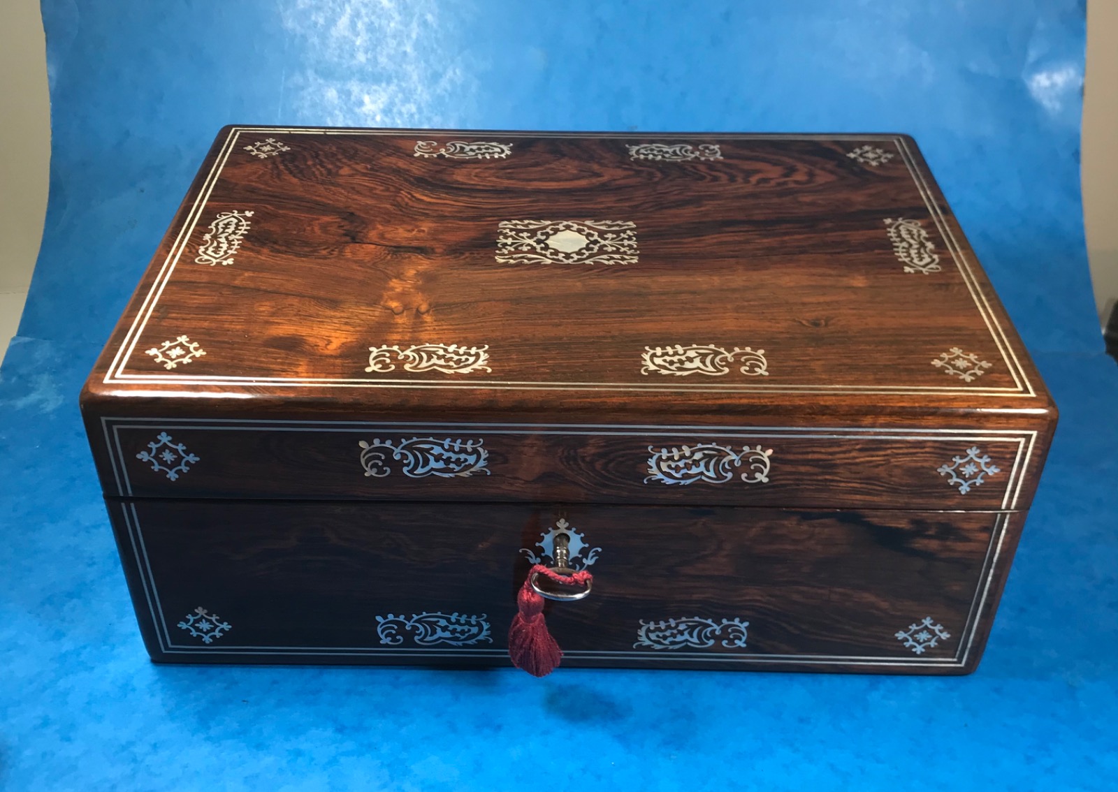 William IV Rosewood Box with Mother of Pearl & Pewter Inlay
