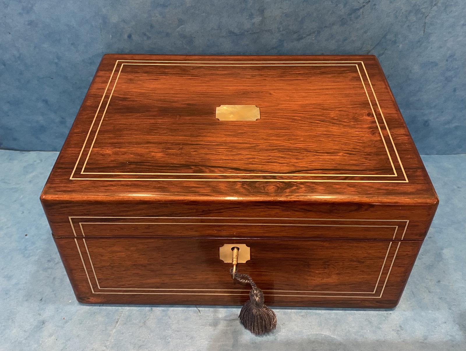 William IV Rosewood Jewellery Box Featuring Mother Of Pearl And Pewter Inlay